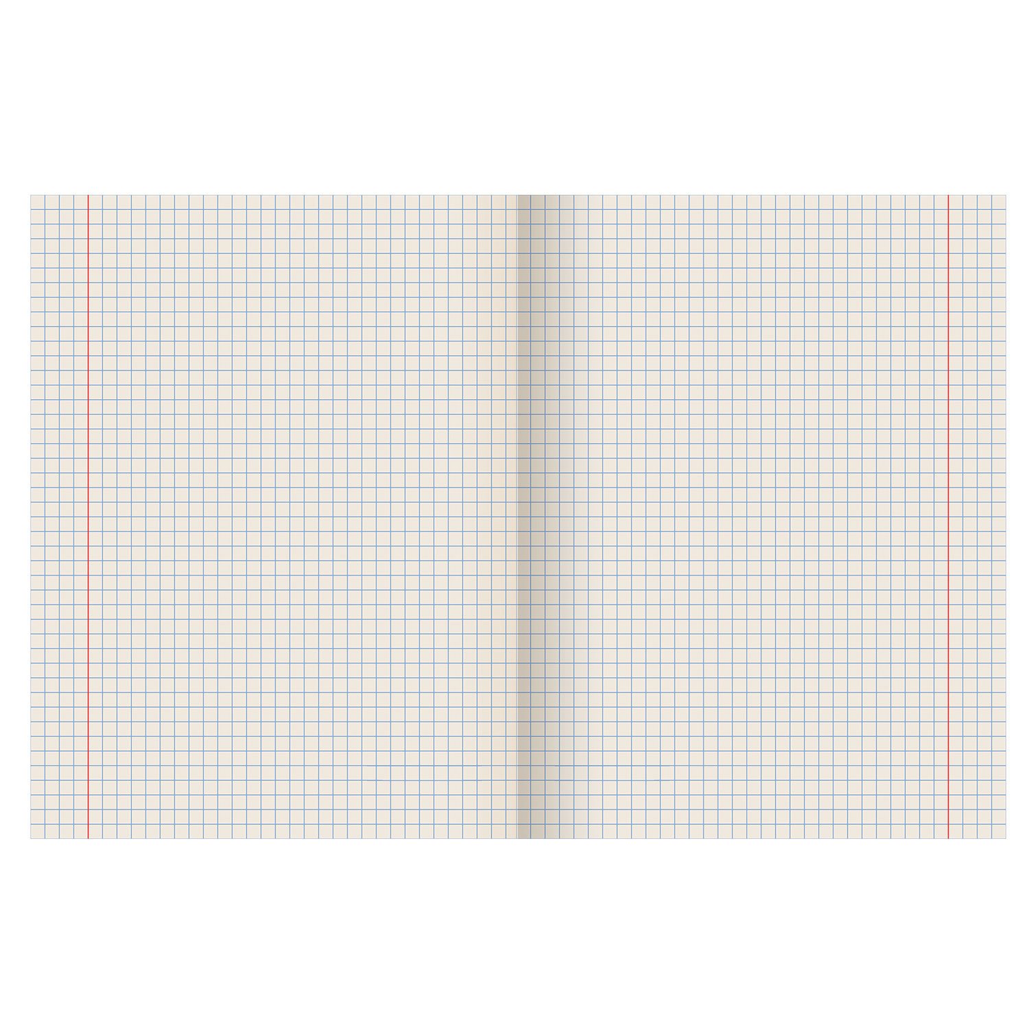 Внутренний блок 12 листов плотностью 60 г/м2 из офсетной бумаги с серым оттенком (белизна 80%) имеет линовку в клетку с полями. Обложка изготовлена из офсета плотностью 80 г/м2. Скрепка надежно скрепляет листы между собой.
