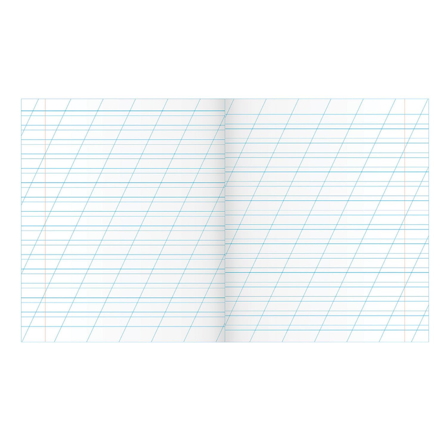Внутренний блок 12 листов плотностью 60 г/м2 из офсетной бумаги имеет линовку в косую линию с полями. Внутренний блок 92-100% белизны. Скрепка надежно скрепляет листы между собой.