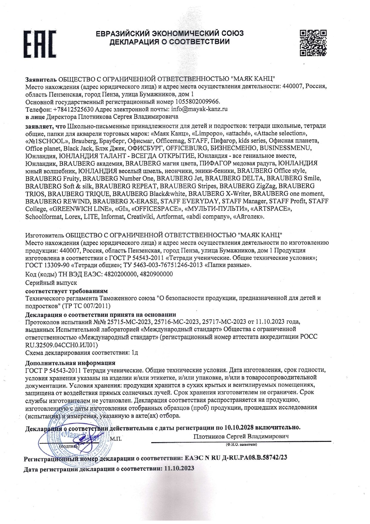 Внутренний блок 12 листов и плотностью 60 г/м2 из офсетной бумаги с серым оттенком (белизна 80%) имеет линовку в линию с полями. Обложка изготовлена из офсета плотностью 80 г/м2. Скрепка надежно скрепляет листы между собой.