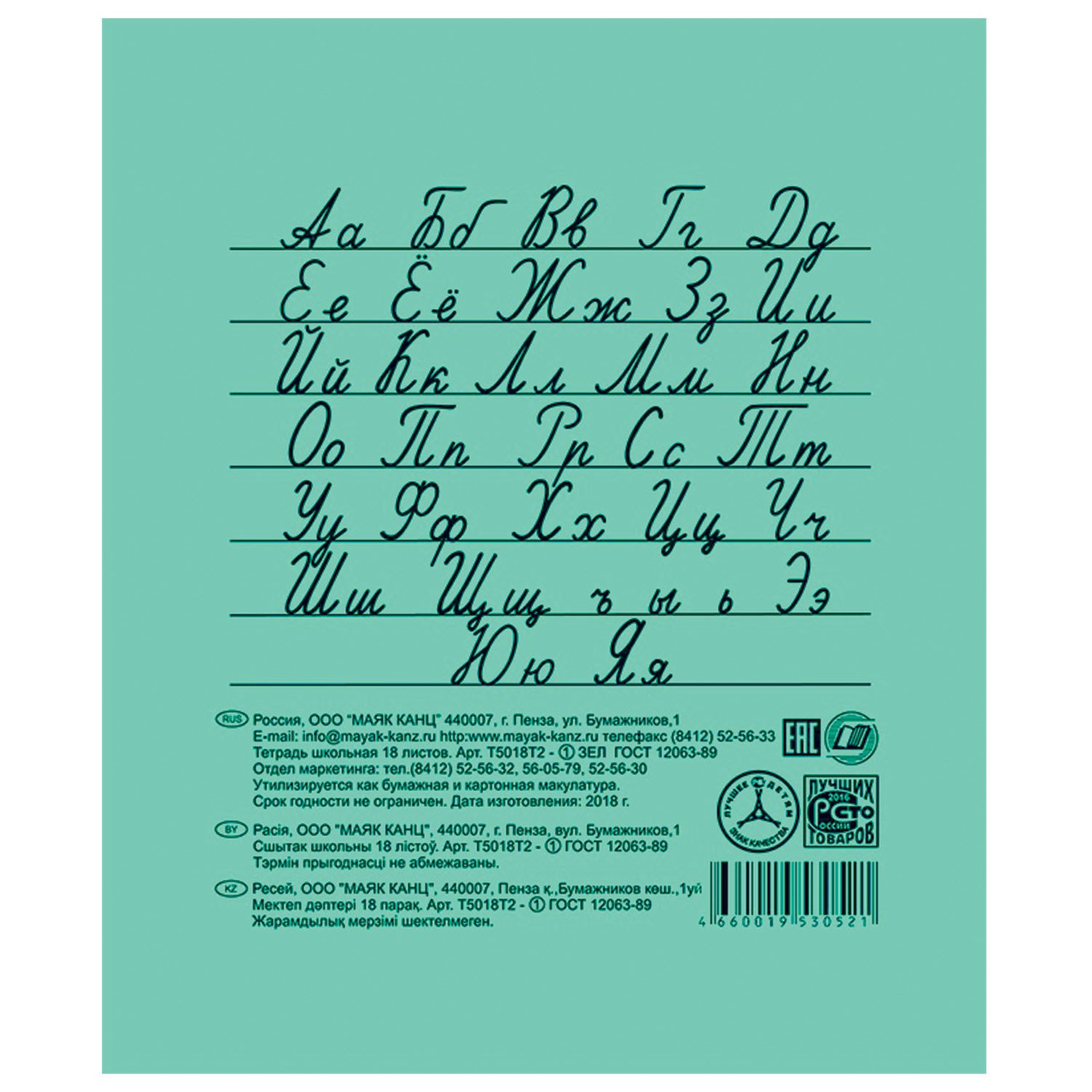 Тетрадь "Маяк" с зеленой обложкой изготовлена в соответствии с ГОСТ 12063-89. Предназначена для дошкольников и учащихся начальных и средних классов.