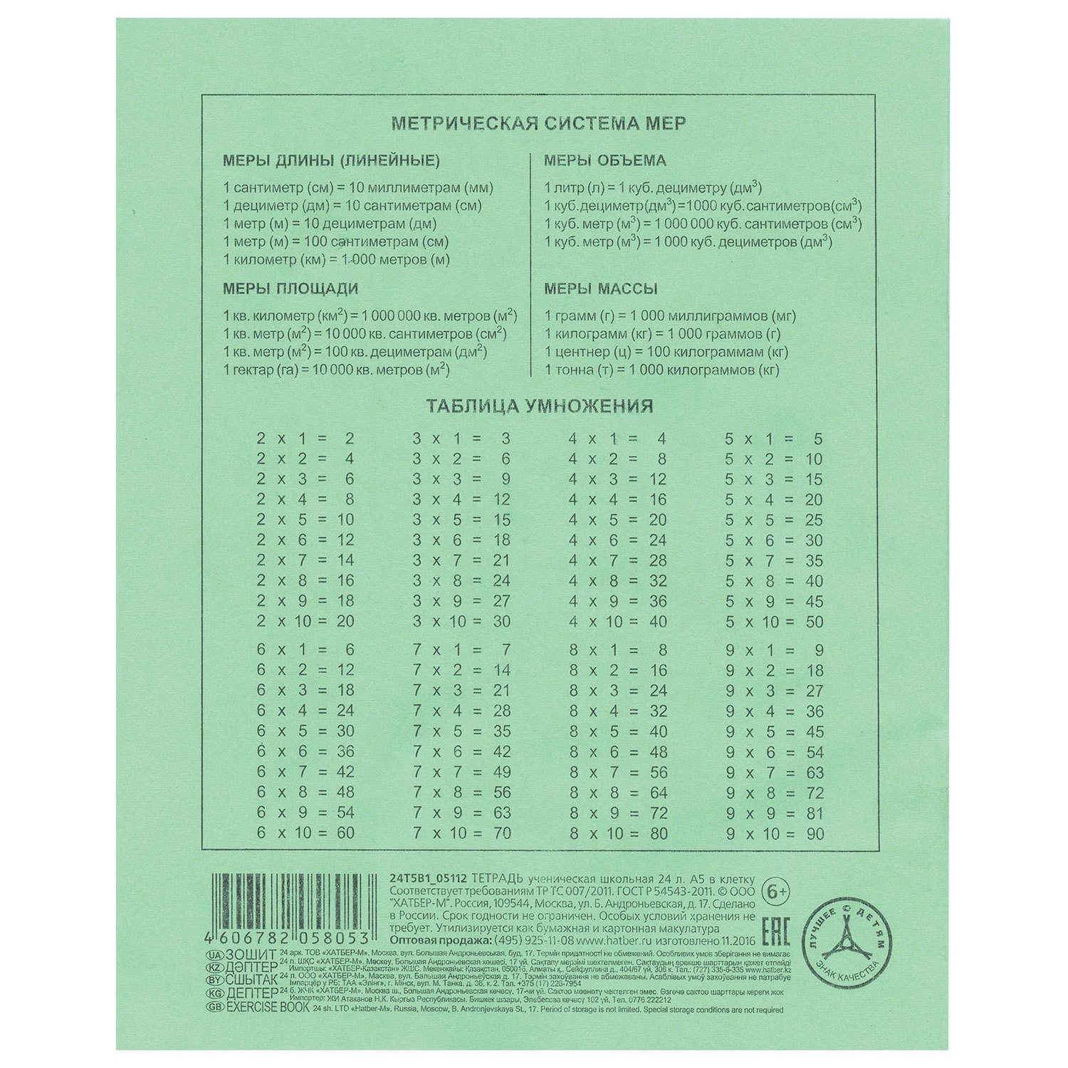 Внутренний блок из офсетной бумаги плотностью 60 г/м2 содержит 24 листа в клетку с полями. Обложка изготовлена из офсета плотностью 80 г/м2. Скрепка надежно скрепляет листы между собой.