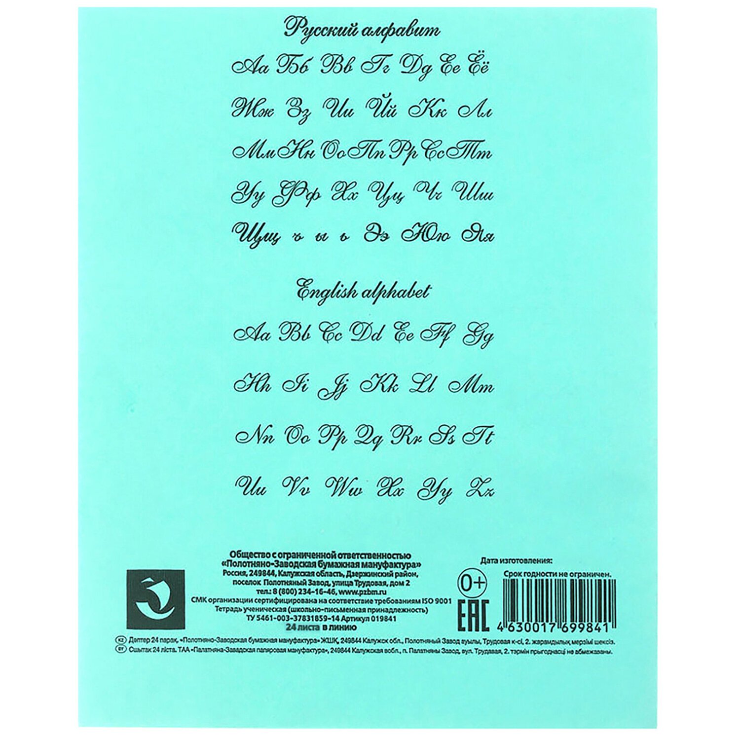 Тетрадь ЗЕЛЁНАЯ обложка 24 л., линия с полями, офсет, "ПЗБМ", 19841
