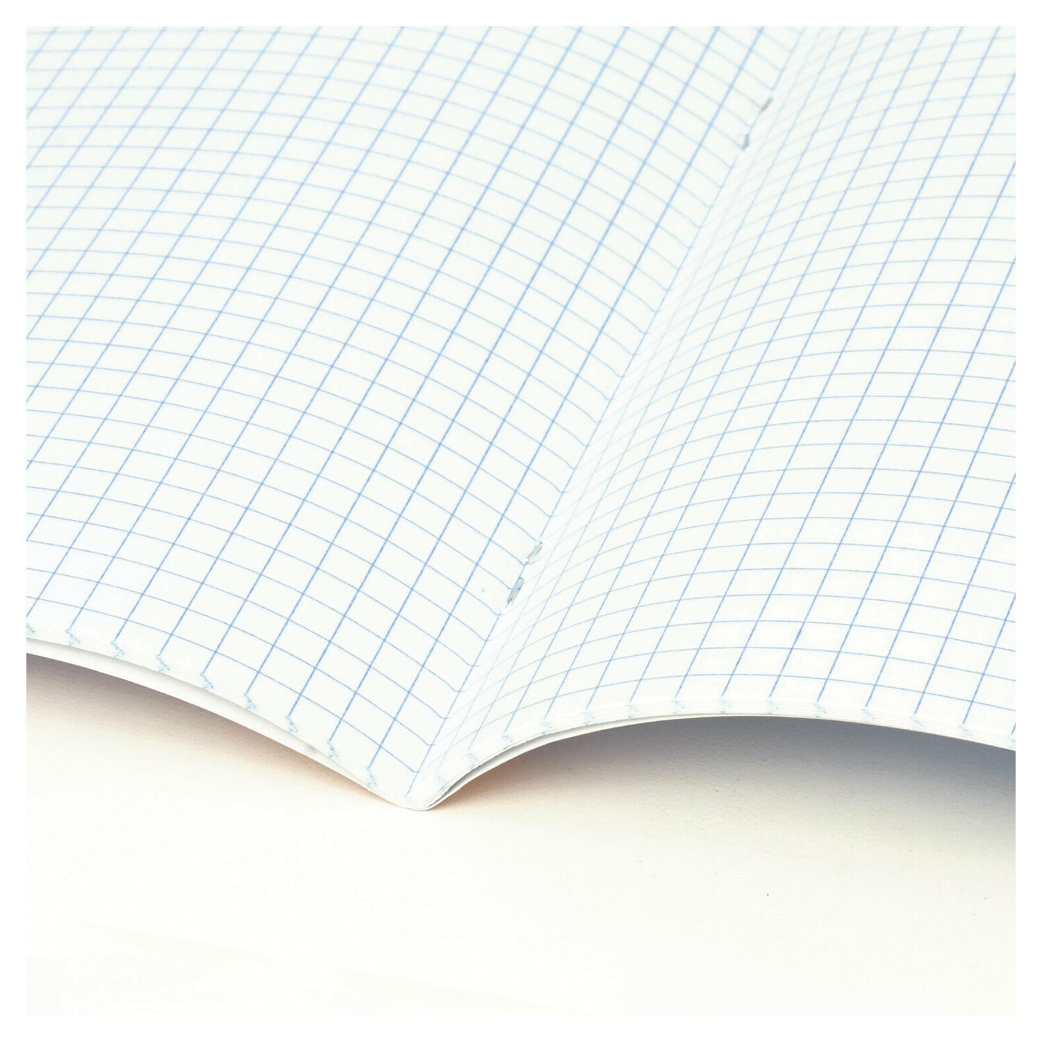 Внутренний блок плотностью 60 г/м2 из офсетной бумаги содержит 12 листов в клетку с полями. Обложка изготовлена из импортного мелованного картона. Скрепка надежно скрепляет листы между собой. Справочная информация на оборотной (задней) стороне обложки содержит меры длины, объема, массы, площади и таблицу умножения.