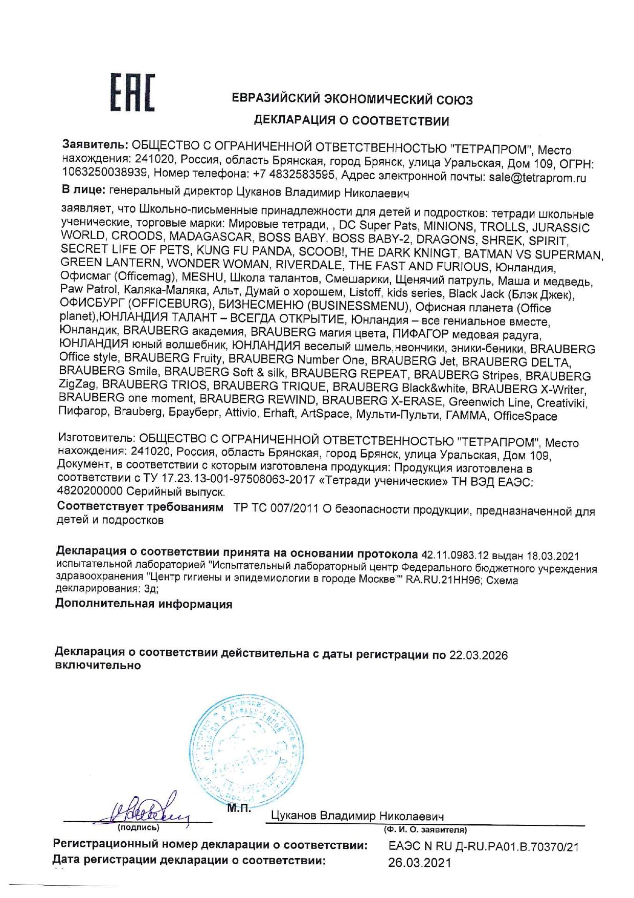 Школьная тетрадь BRAUBERG с зеленой обложкой подходит для всех видов пишущих принадлежностей, включая гелевые, капиллярные и перьевые ручки: написанное на одной стороне не просвечивается на другой.