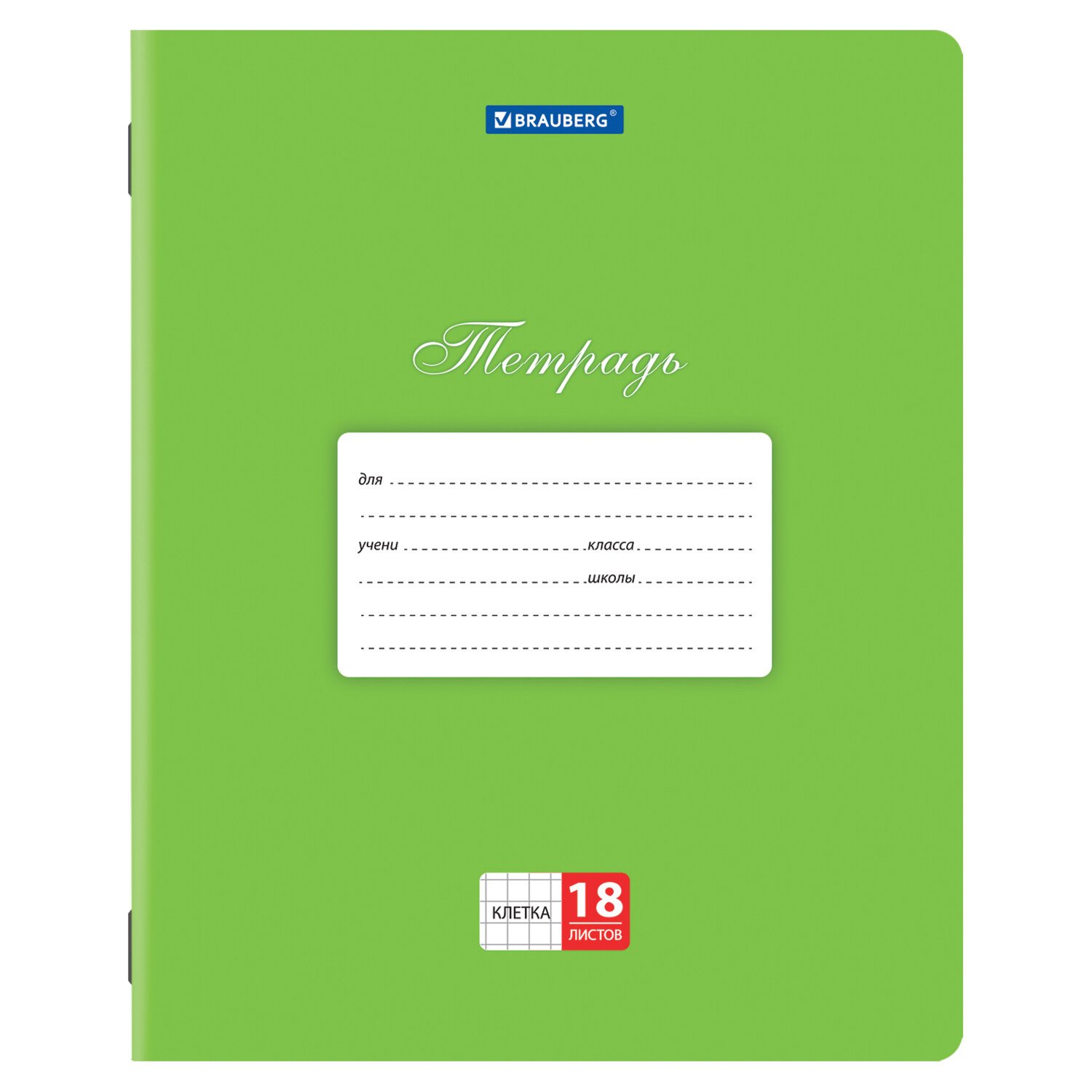 Тетради 18 л. КОМПЛЕКТ 10 шт. BRAUBERG КЛАССИКА, клетка, обложка картон, ЗЕЛЕНАЯ, 106657.