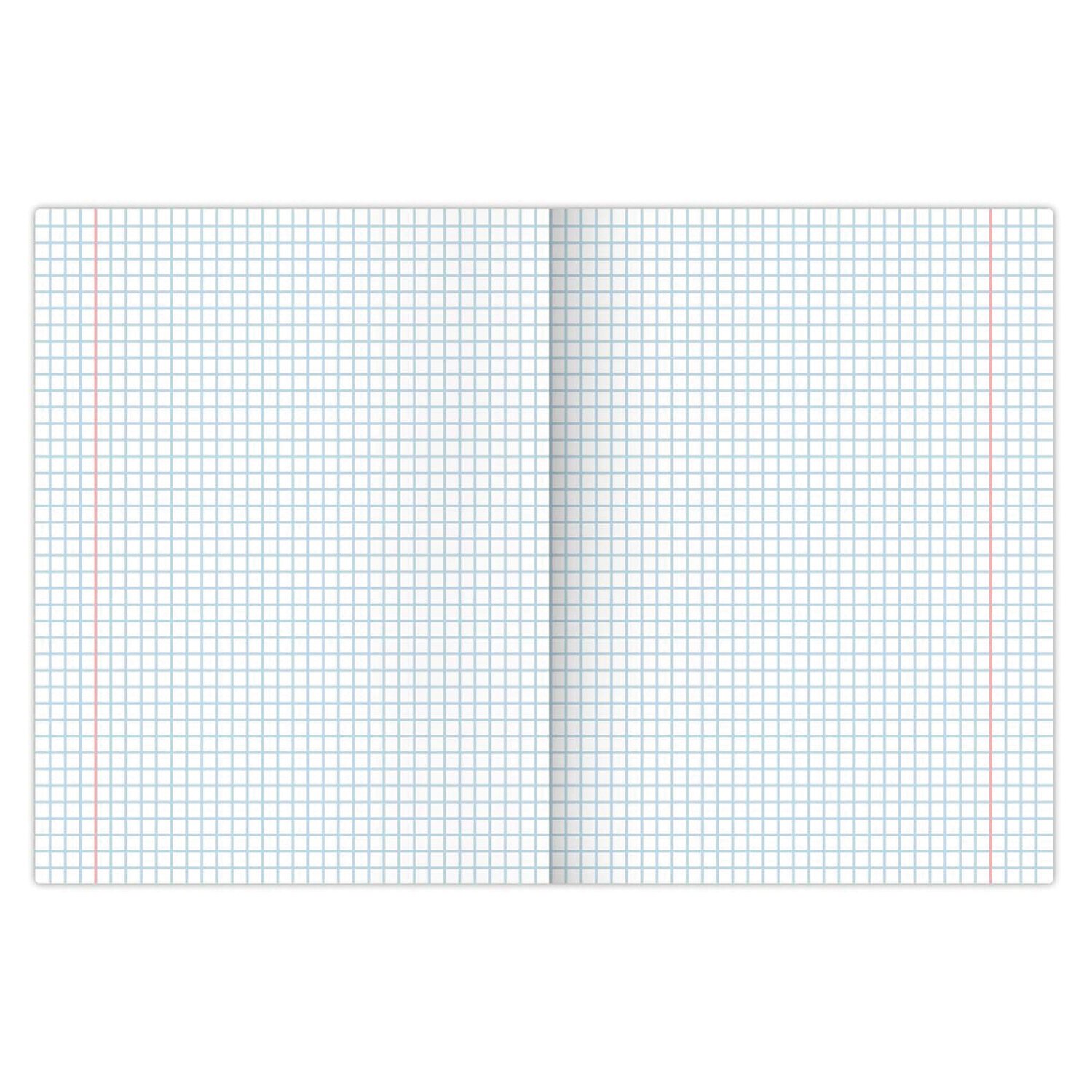 Внутренний блок плотностью 60 г/м2 из офсетной бумаги имеет линовку в клетку с полями. Содержит 18 листов. Обложка изготовлена из импортного мелованного картона. Скрепка надежно скрепляет листы между собой. Справочная информация на оборотной (задней) стороне обложки содержит меры длины, объема, массы, площади и таблицу умножения.