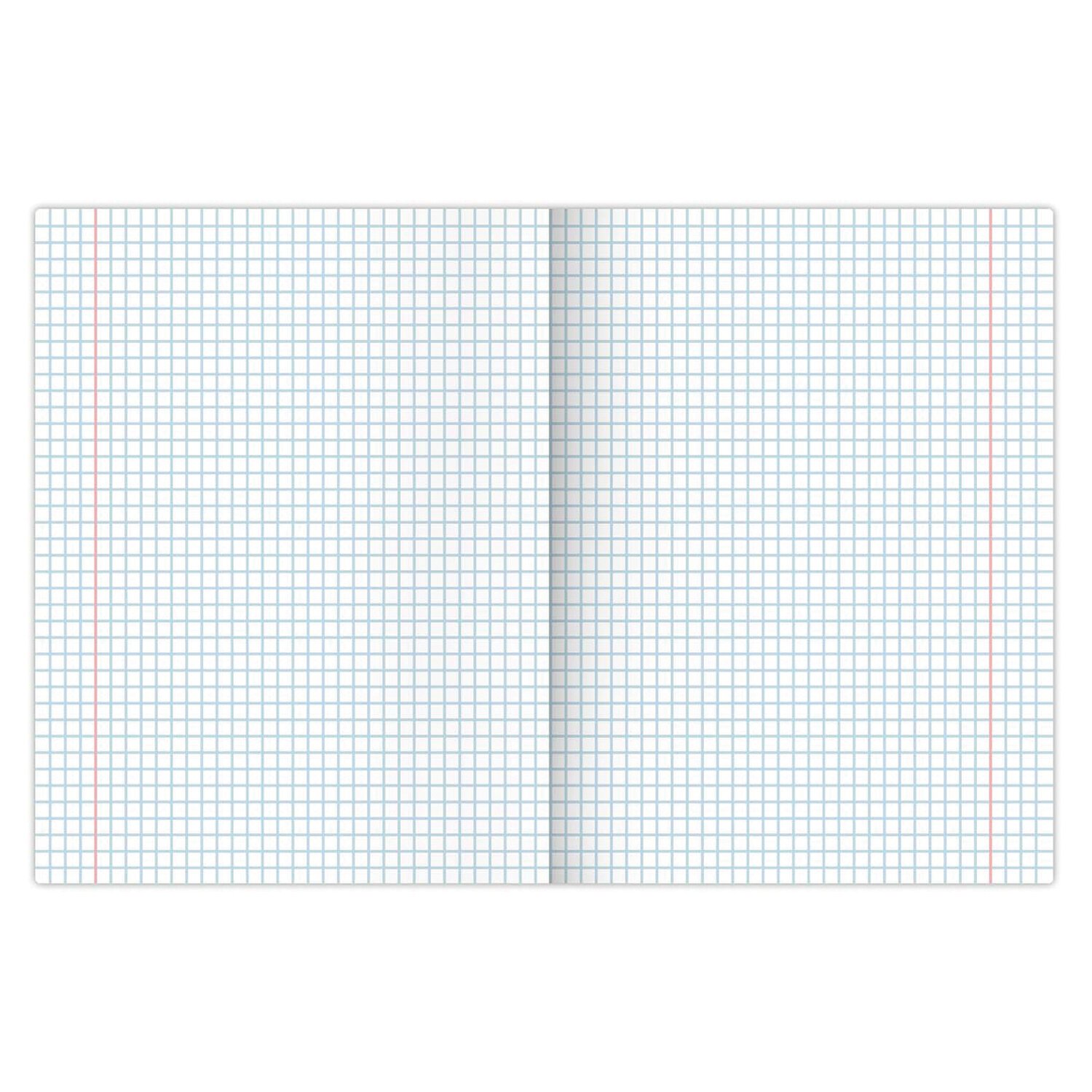 Внутренний блок плотностью 60 г/м2 изготовлен из офсетной бумаги, линовка - клетка с полями. Содержит 24 листа. Обложка изготовлена из импортного мелованного картона. Скрепка надежно скрепляет листы между собой. Справочная информация на оборотной (задней) стороне обложки содержит меры длины, объема, массы, площади и таблицу умножения.