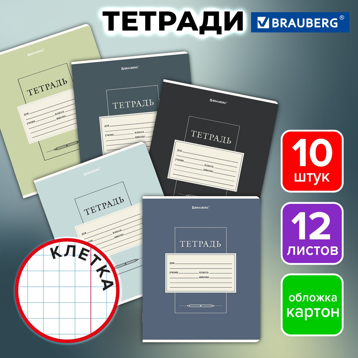 Тетради ДЭК 12 л., КОМПЛЕКТ 10 шт., BRAUBERG, клетка, обложка картон, "CLASSIC", 107311