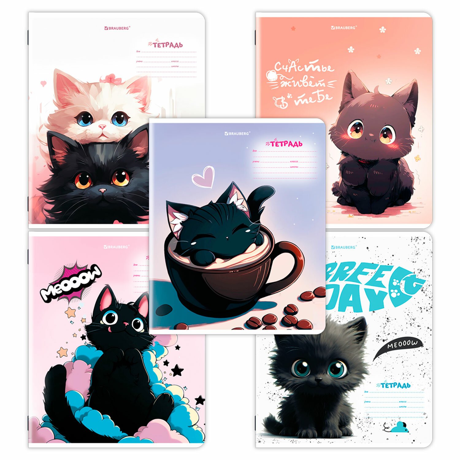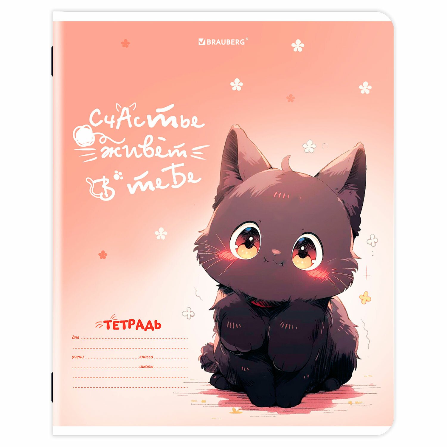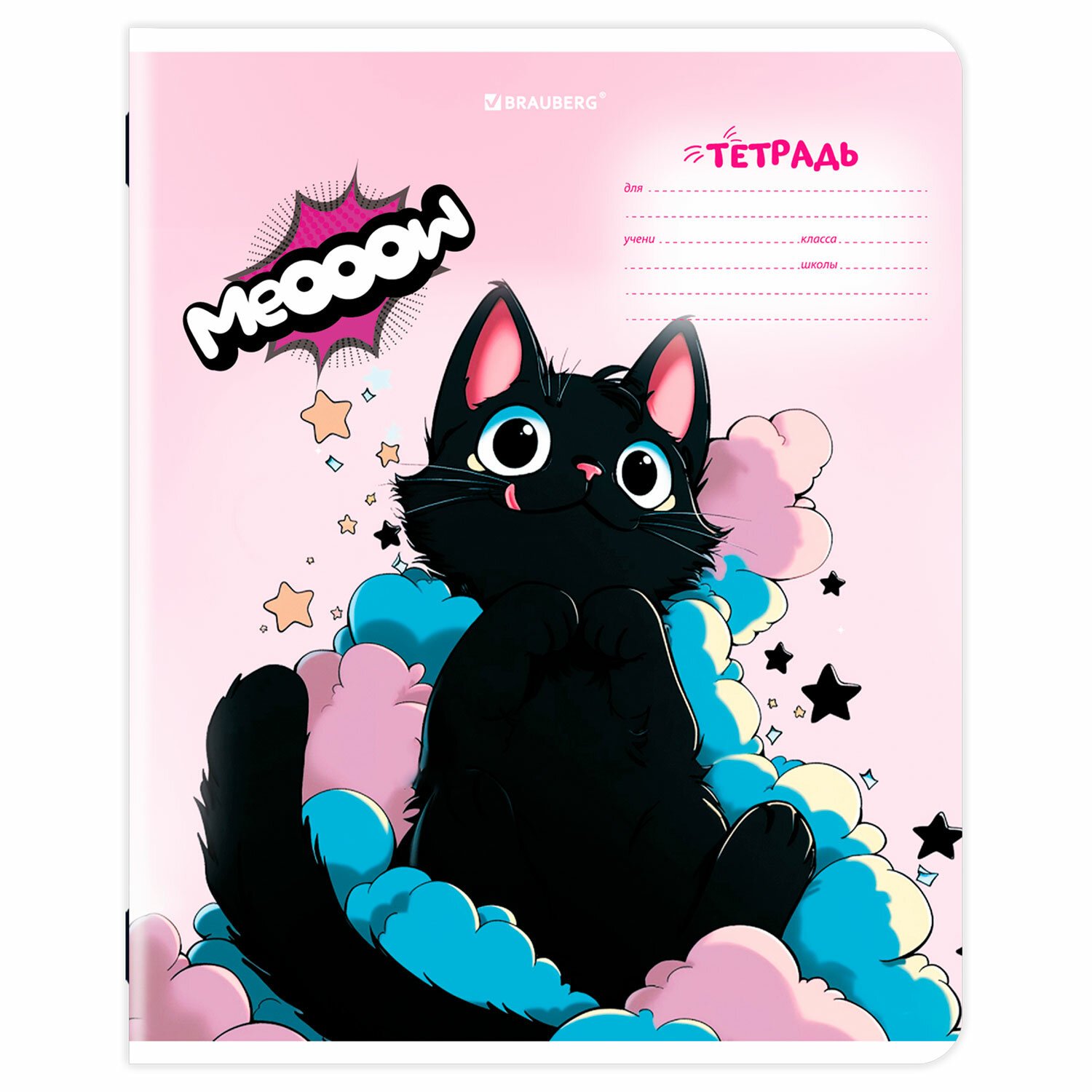 Школьная тетрадь BRAUBERG "КОТИКИ" с яркой обложкой с рисунком подходит для всех видов пишущих принадлежностей, включая гелевые, капиллярные и перьевые ручки: написанное на одной стороне листа не просвечивает на другой.
