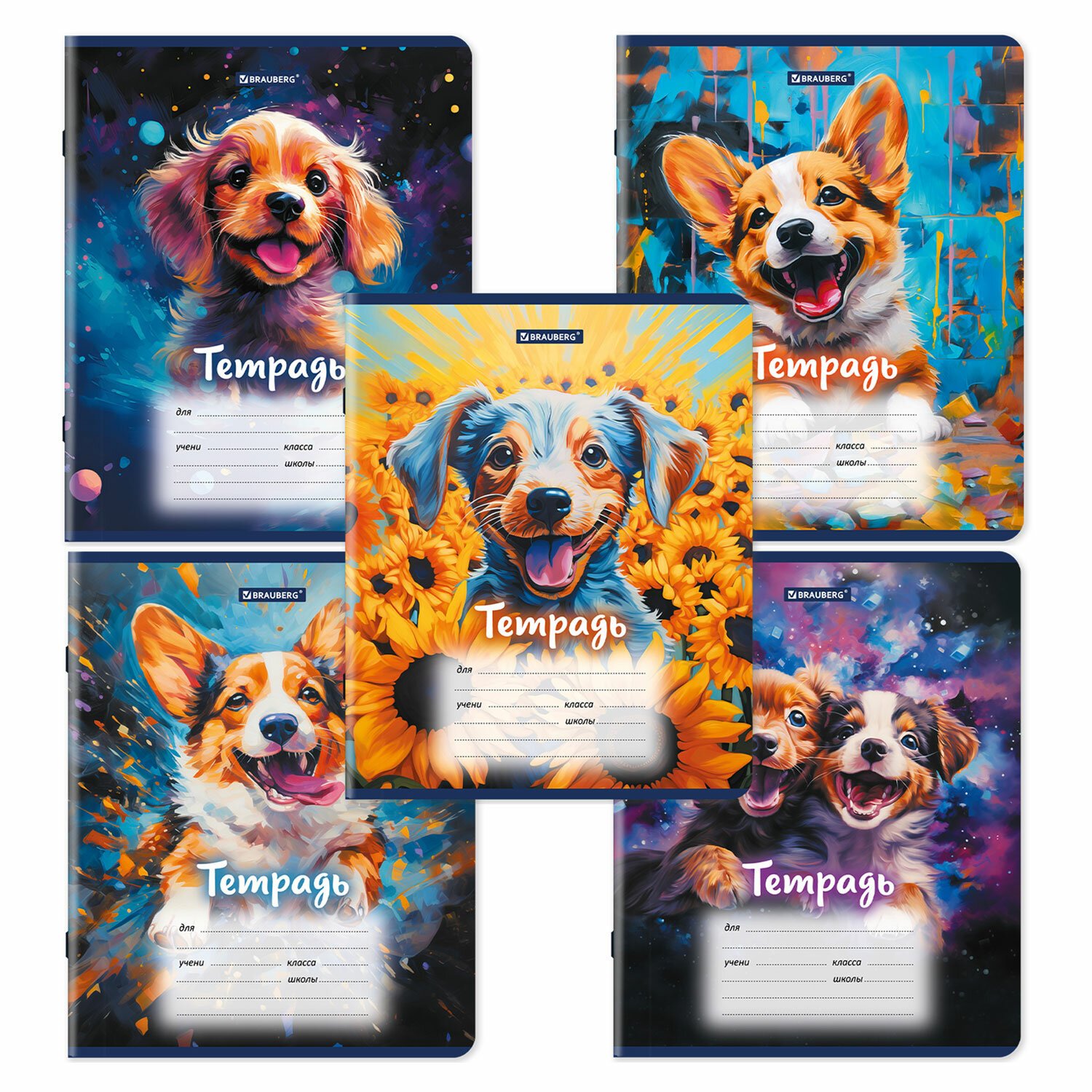 Тетради ДЭК 12 л. КОМПЛЕКТ 10 шт., BRAUBERG, клетка, обложка картон, Собачки, 106755