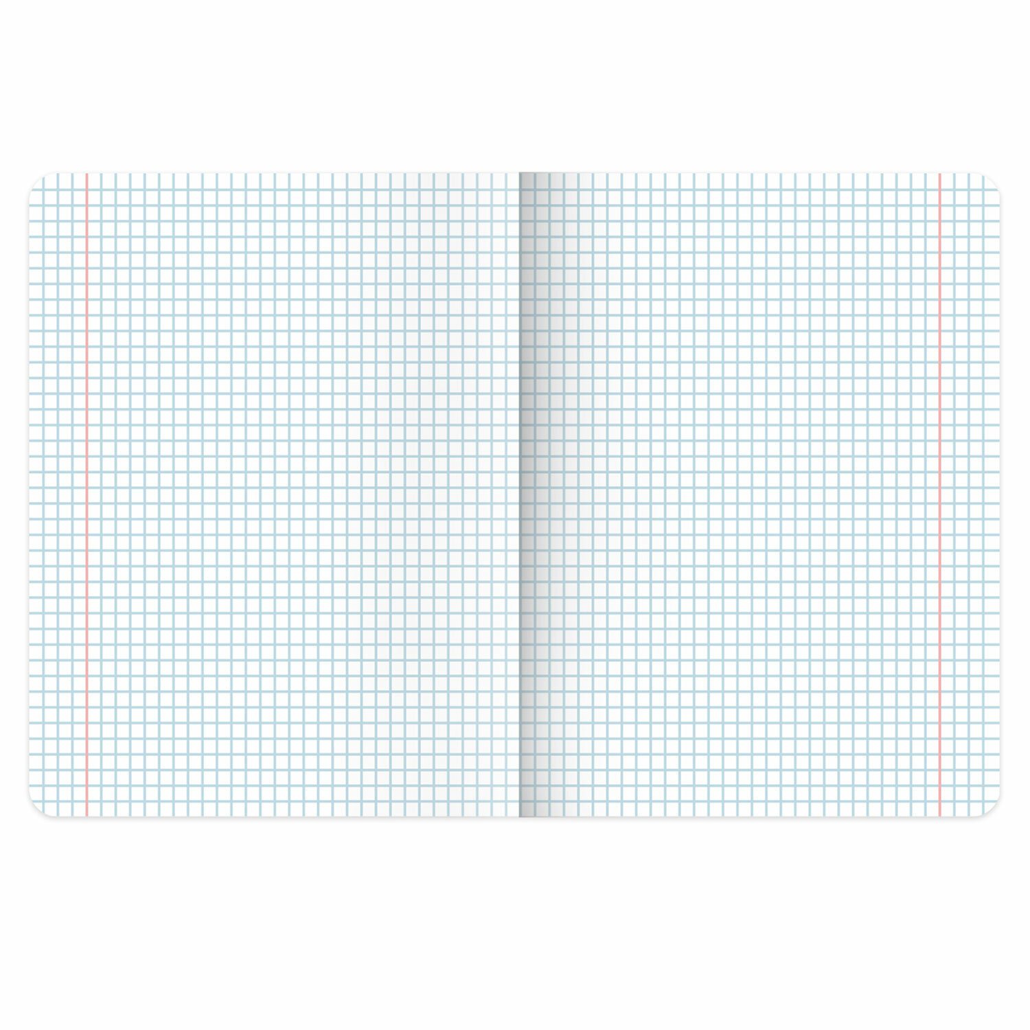 Внутренний блок плотностью 60 г/м2 из офсетной бумаги содержит 12 листов в клетку с полями. Обложка изготовлена из импортного мелованного картона с ярким дизайном. Скрепка надежно скрепляет листы между собой. Справочная информация на оборотной (задней) стороне обложки содержит меры длины, объема, массы, площади и таблицу умножения.