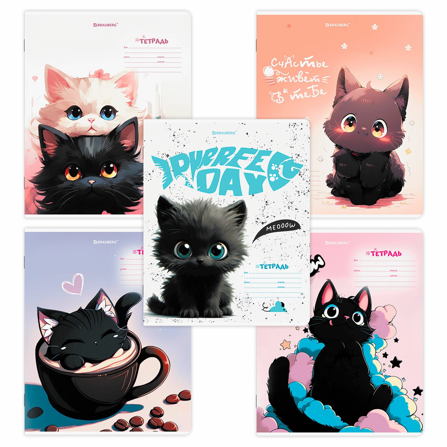 Тетради ДЭК 18 л. КОМПЛЕКТ 10 шт. BRAUBERG, клетка, обложка картон, "КОТИКИ", 107335