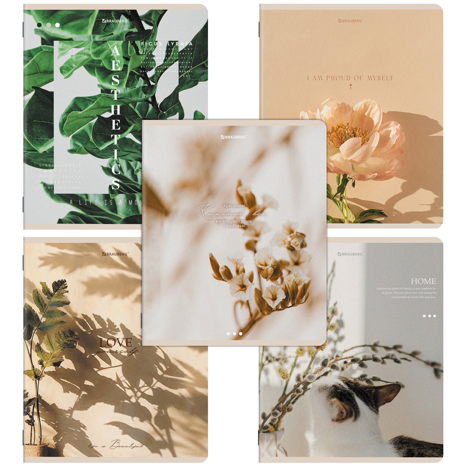 Тетради ДЭК А5 48 л. КОМПЛЕКТ 5 шт. BRAUBERG, скоба, клетка, SoftTouch, "ЭСТЕТИКА", 404949
