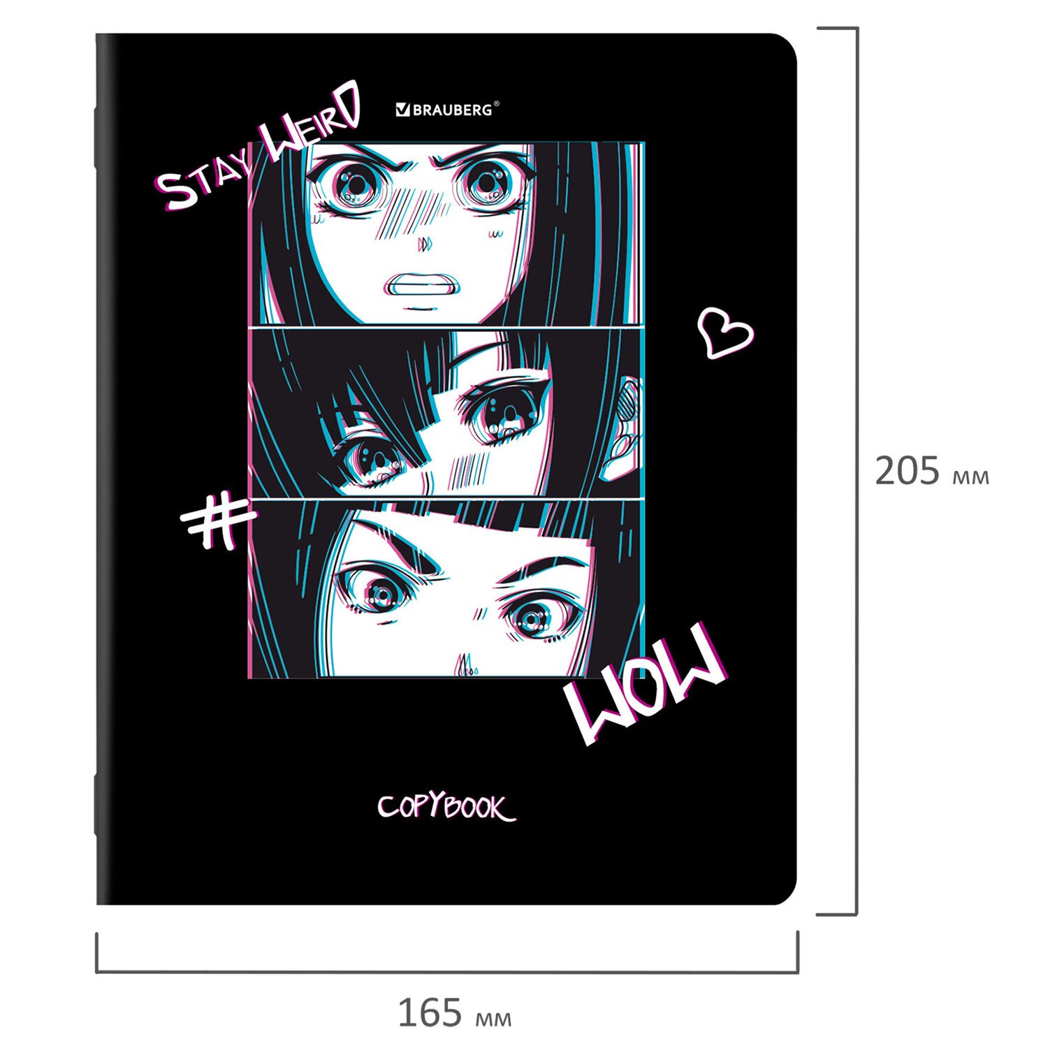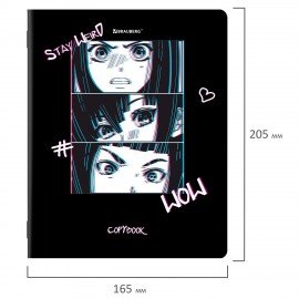 Внутренний блок содержит 48 листов офсетной бумаги плотностью 65 г/м2. Обложка изготовлена из мелованного картона и покрыта глянцевым лаком. Линовка – клетка с полями. Скрепка надежно скрепляет листы между собой. Белизна – 100%. Формат А5.