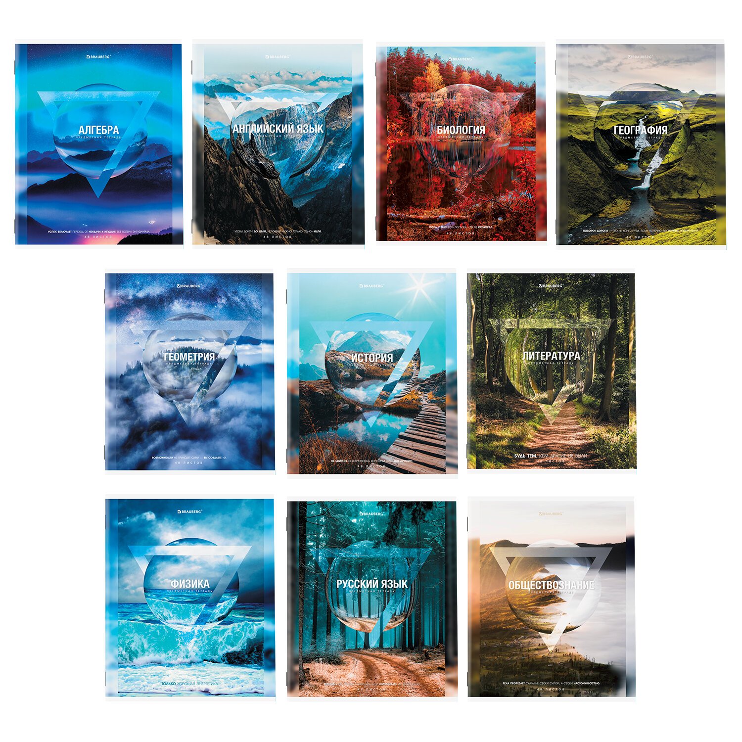 Тетради предметные, КОМПЛЕКТ 10 ПРЕДМЕТОВ, 48 л., обложка картон, BRAUBERG, "ПРИРОДА", 404839