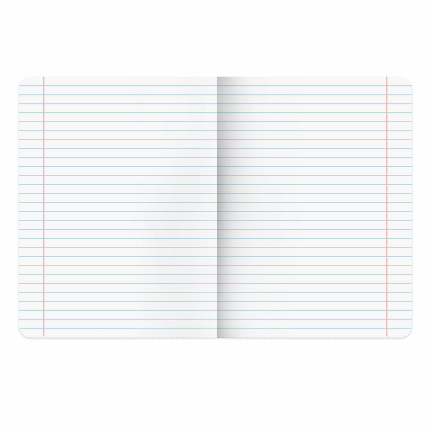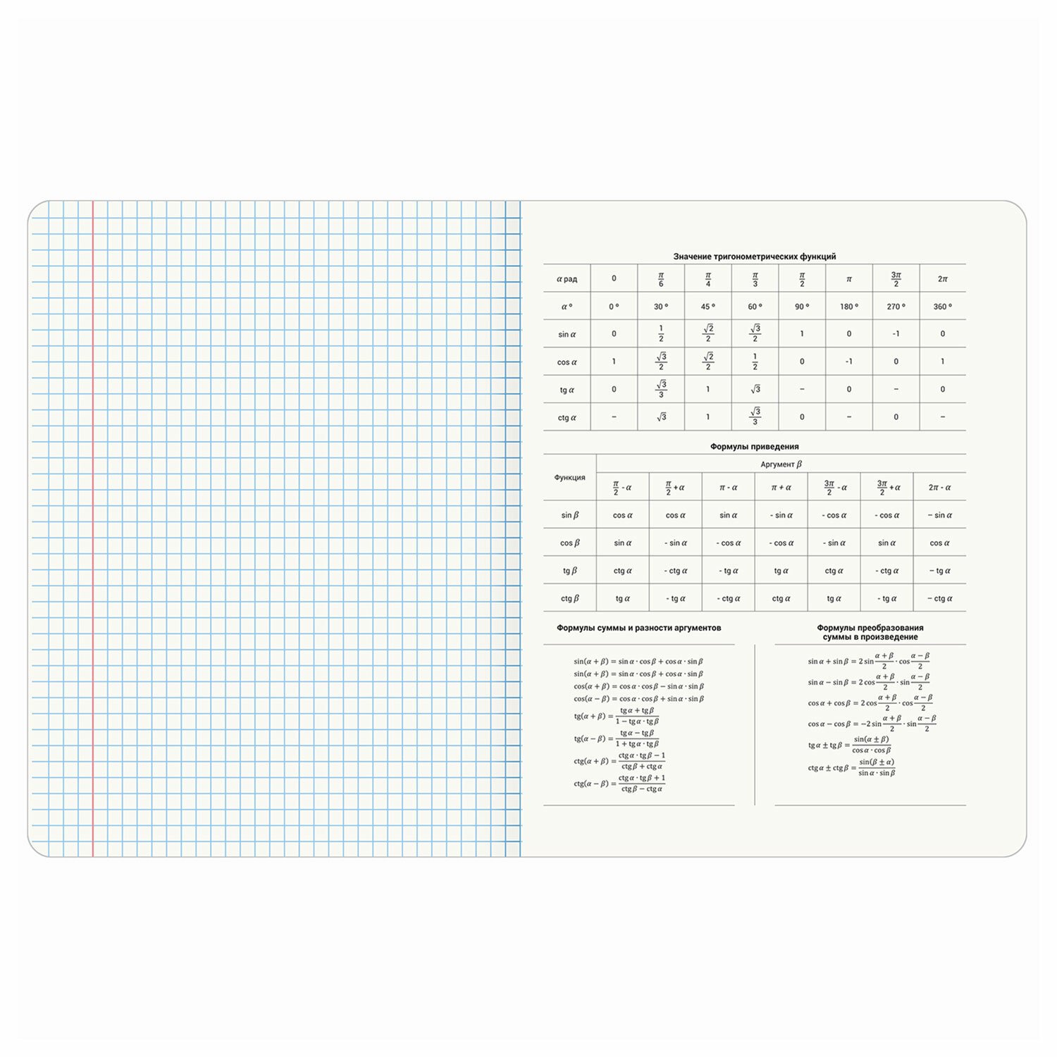 Тетради формата А5 содержат 48 листов, изготовленных из высококачественной офсетной бумаги плотностью 60 г/м2 и 100% белизной, с красными полями. Листы соединены скобами.