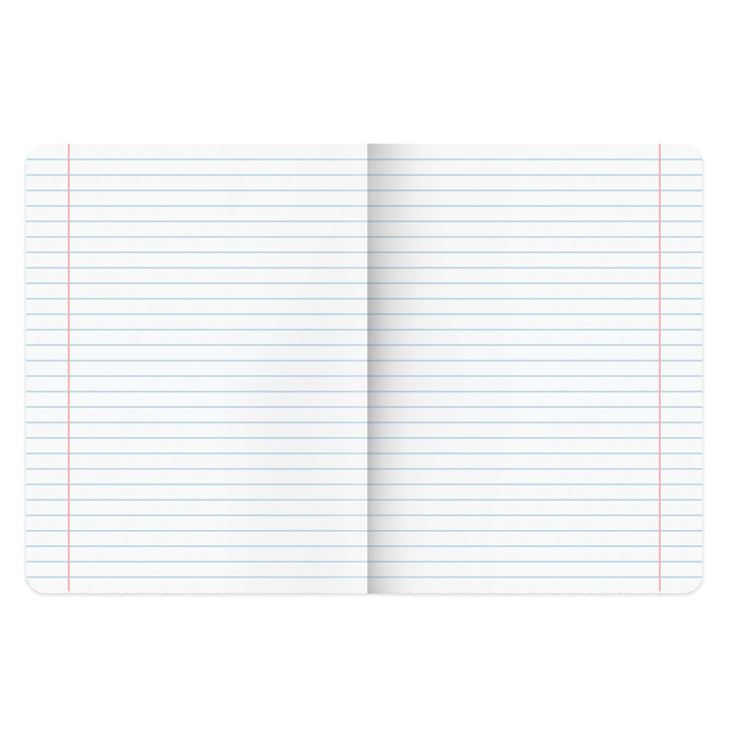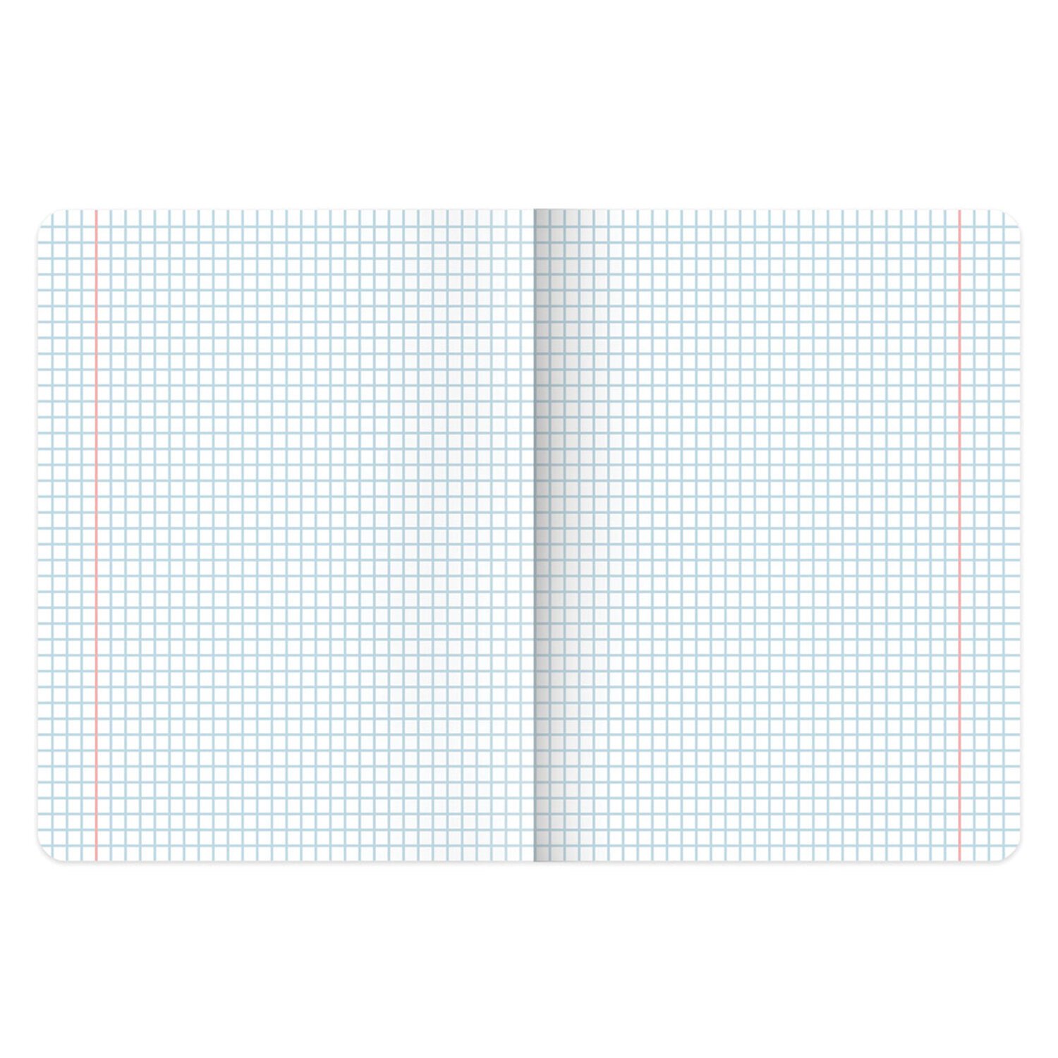 Внутренний блок плотностью 60 г/м2. Белая бумага 100% белизны с красными полями. 48 листов. Формат А5. На скрепке. Прямые углы. Размер: 202х165 мм.