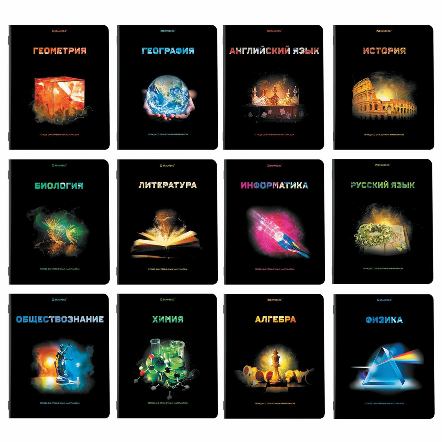 Тетради предметные, КОМПЛЕКТ 12 ПРЕДМЕТОВ, 48 листов, глянцевый УФ-лак, BRAUBERG, "DARK", 404028