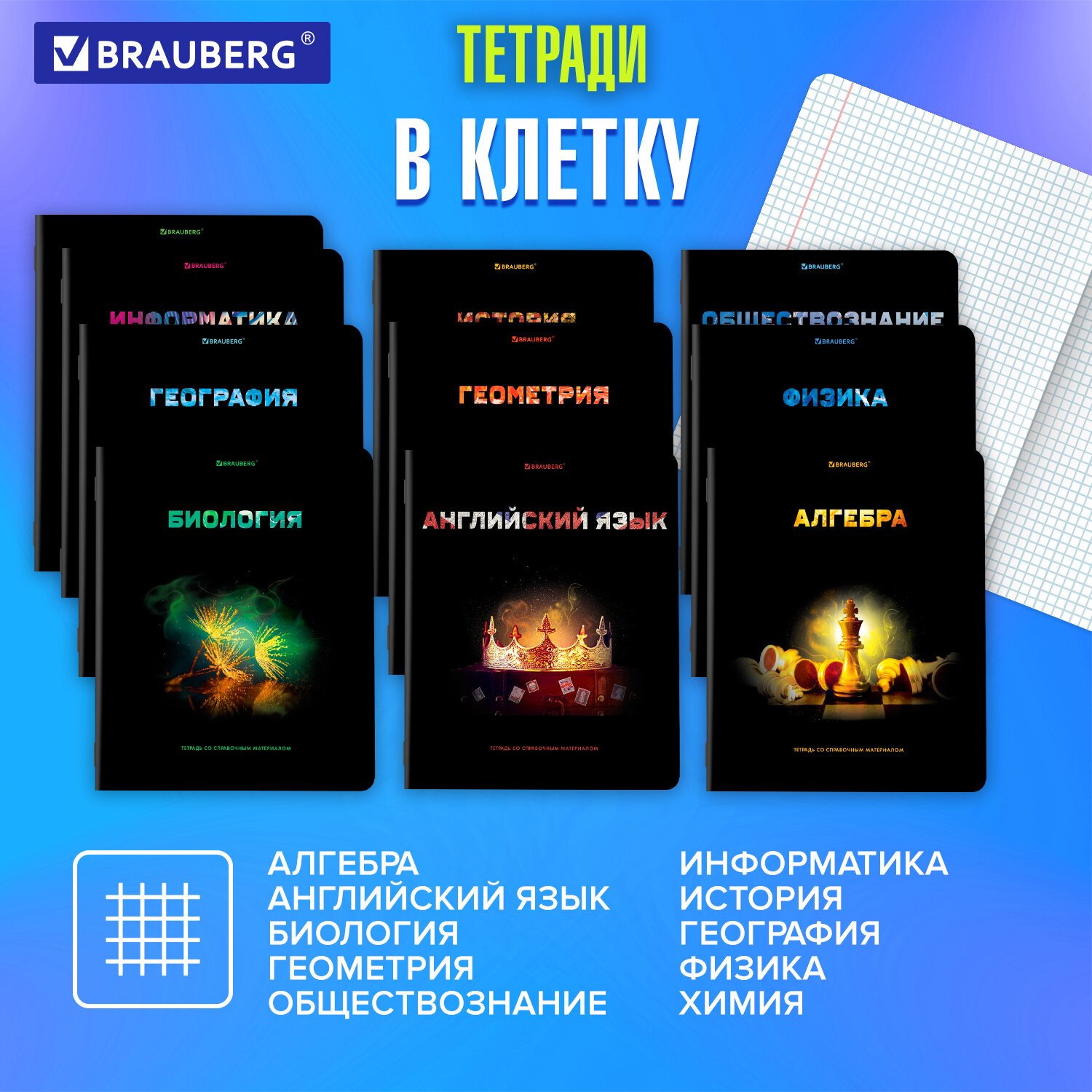 Тетради предметные, КОМПЛЕКТ 12 ПРЕДМЕТОВ, 48 л., обложка картон, BRAUBERG, "КЛАССИКА SCIENCE", 404843