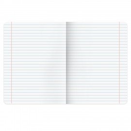 Тетради формата А5 содержат 48 листов, изготовленных из высококачественной офсетной бумаги плотностью 60 г/м2 и 100% белизной, с красными полями. Листы соединены скобами.