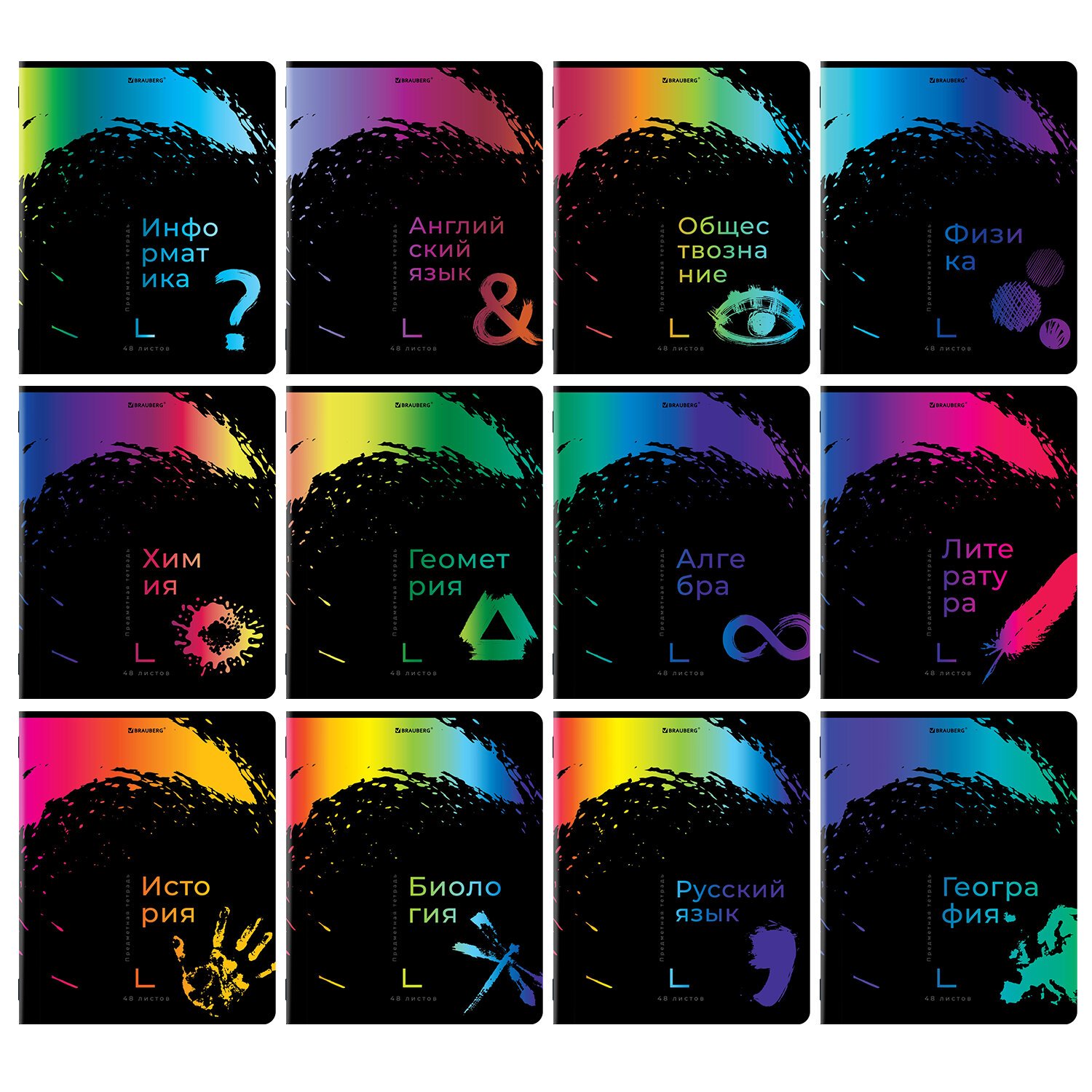 Тетради предметные, КОМПЛЕКТ 12 ПРЕДМЕТОВ, 48 л., матовая ламинация, лак, BRAUBERG, "BRIGHT COLOURS", 404838