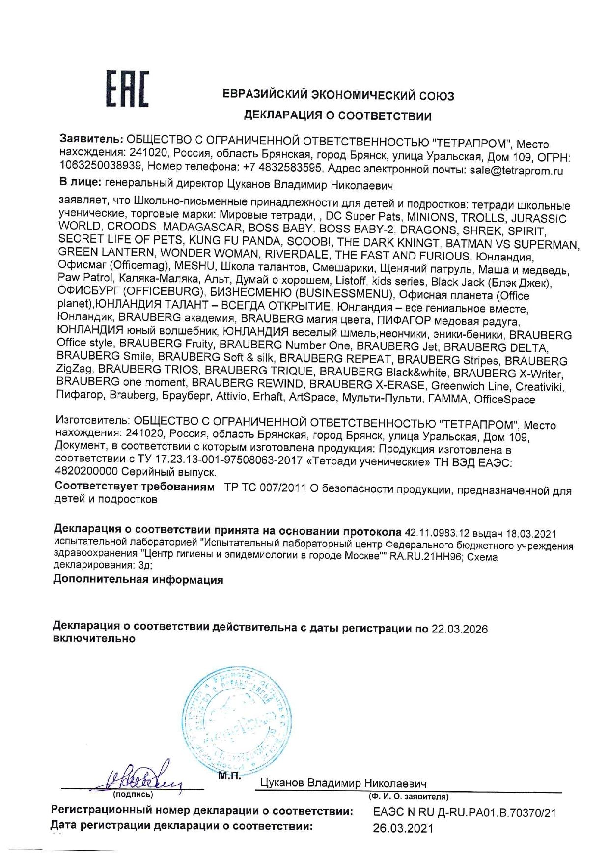 Предметные тетради BRAUBERG предназначены для учащихся средних и старших классов. Обложка из импортного мелованного картона обеспечивает тетради долговечность. Внутренний блок плотностью 60 г/м2.