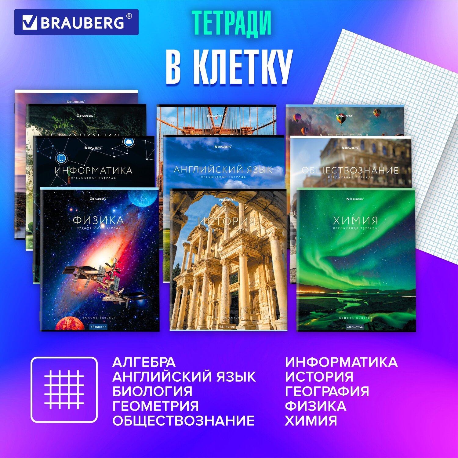 Тетради предметные, КОМПЛЕКТ 12 ПРЕДМЕТОВ, 48 л., обложка картон, BRAUBERG, "КЛАССИКА SCIENCE", 404843