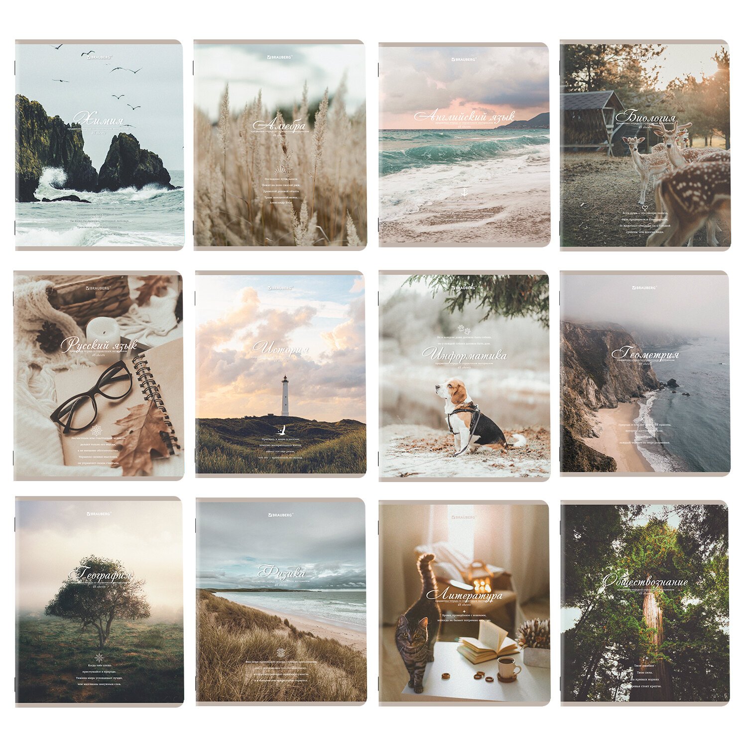 Тетради предметные, КОМПЛЕКТ 13 ПРЕДМЕТОВ, 48л, SoftTouch, BRAUBERG, PEACEFUL, 405182