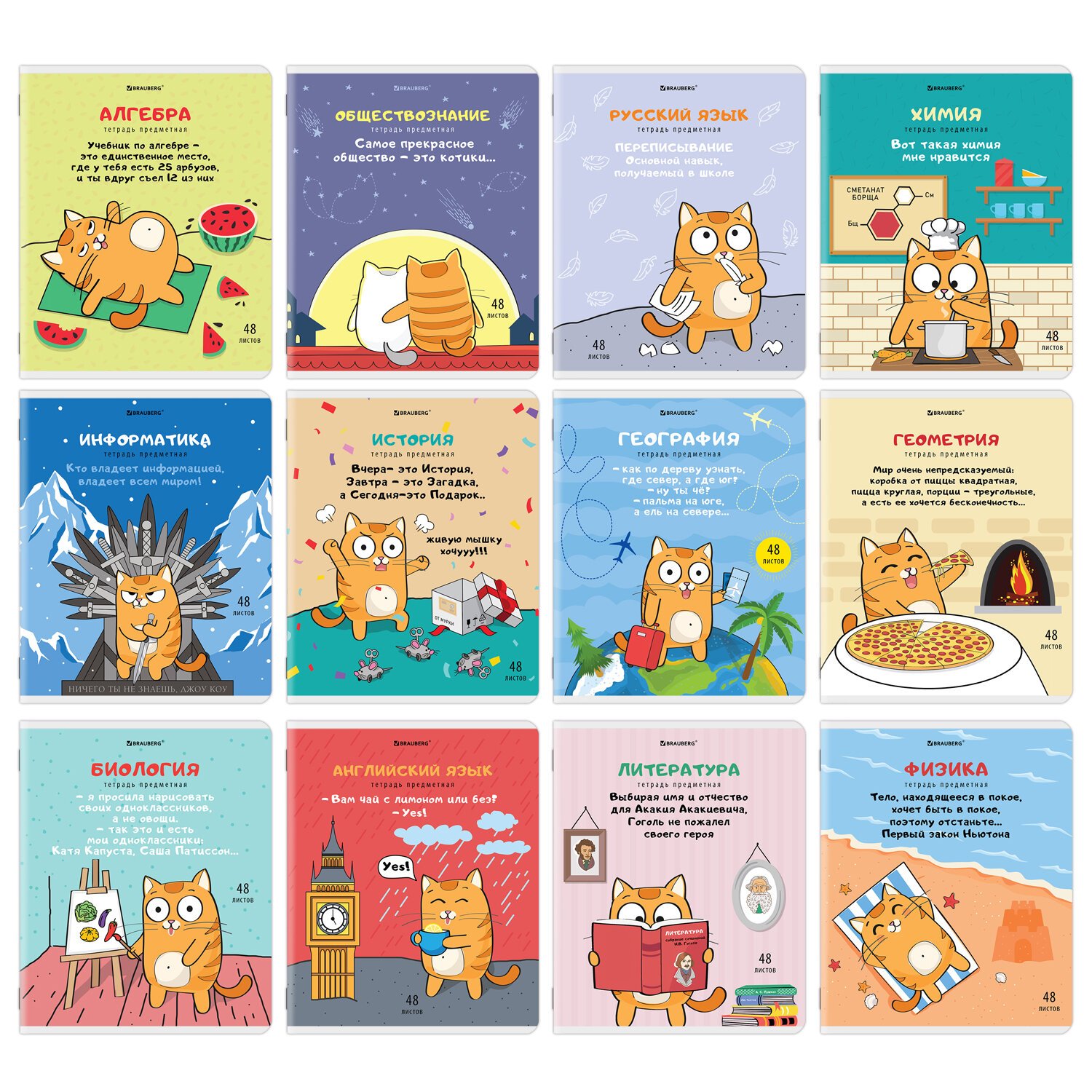 Тетради предметные, КОМПЛЕКТ 12 ПРЕДМЕТОВ, 48 л., TWIN-лак, BRAUBERG, "КОТ-ЭНТУЗИАСТ", 404609