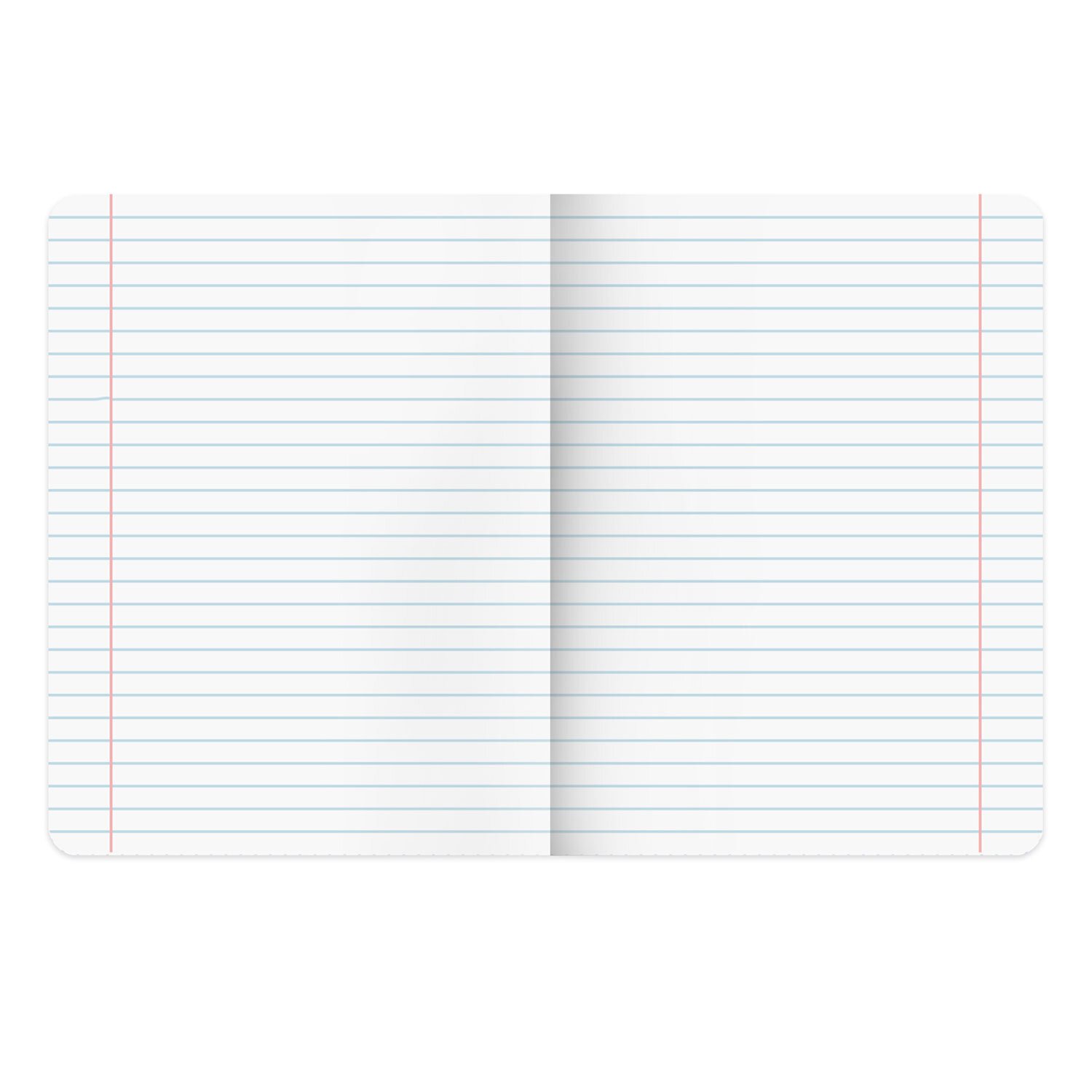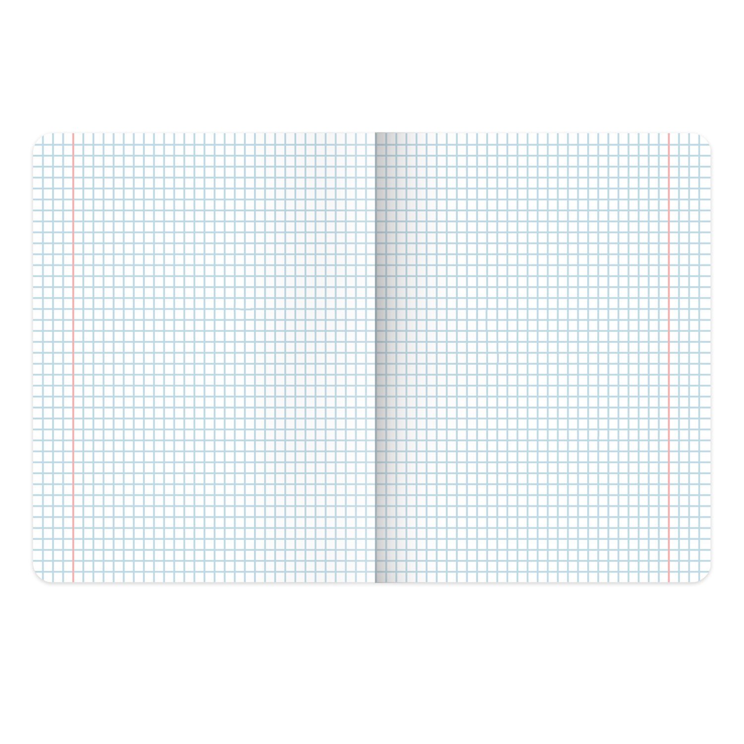 Тетради формата А5 содержат 48 листов, изготовленных из высококачественной офсетной бумаги 100% белизны и плотности 60 г/м2, с красными полями. Листы соединены скобами.