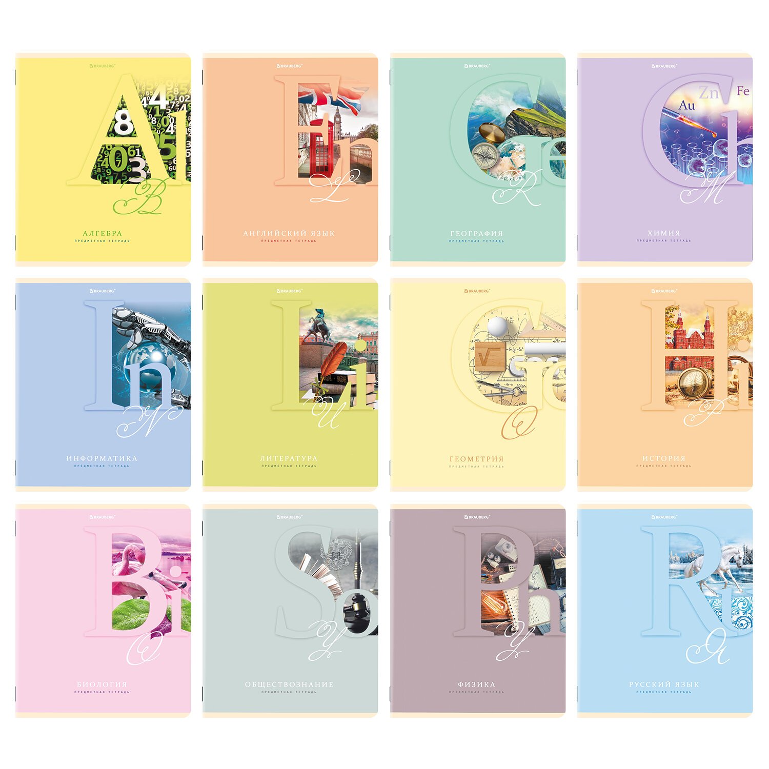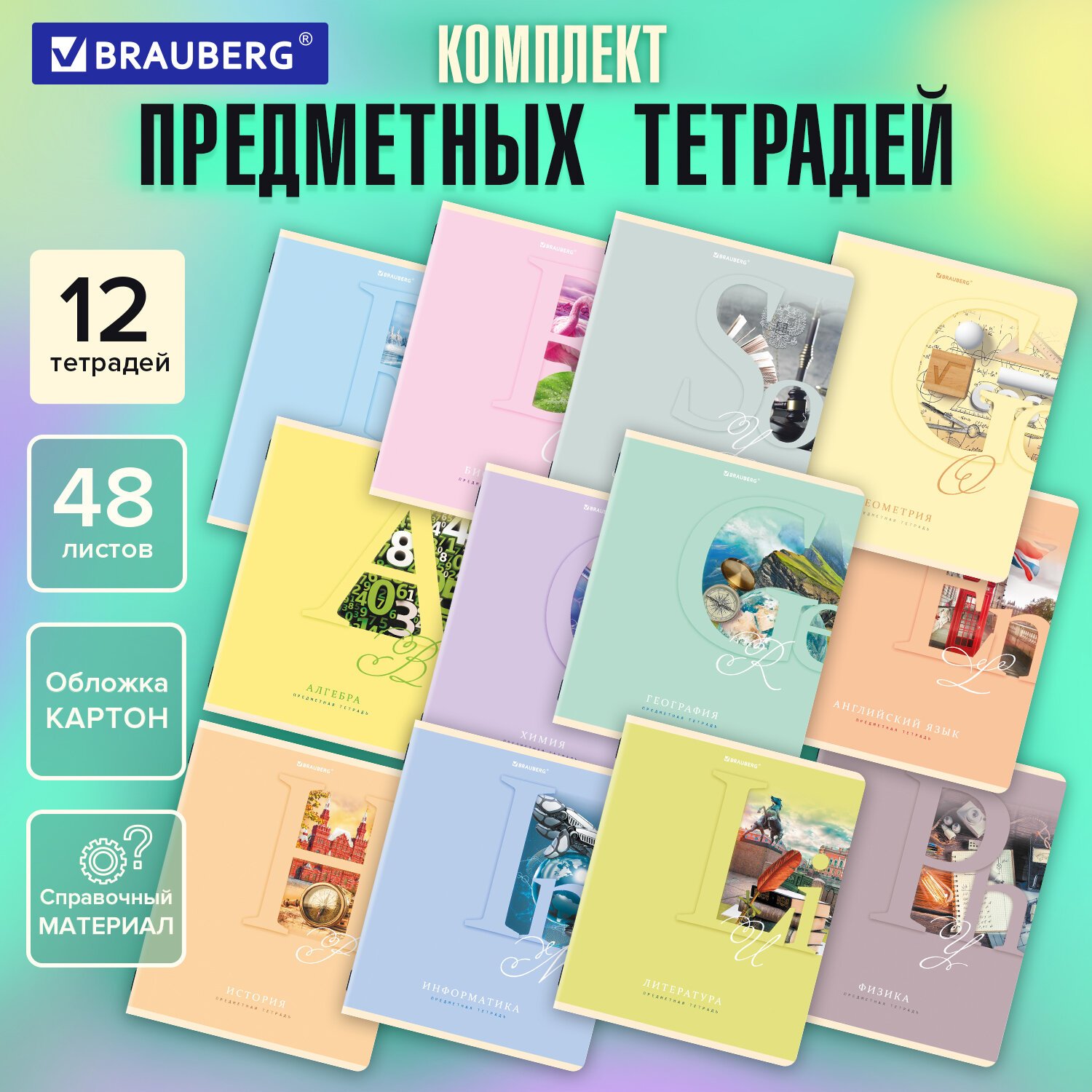 Тетради предметные, КОМПЛЕКТ 12 ПРЕДМЕТОВ, 48 листов, обложка картон, BRAUBERG, "ПАСТЕЛЬНАЯ", 404026