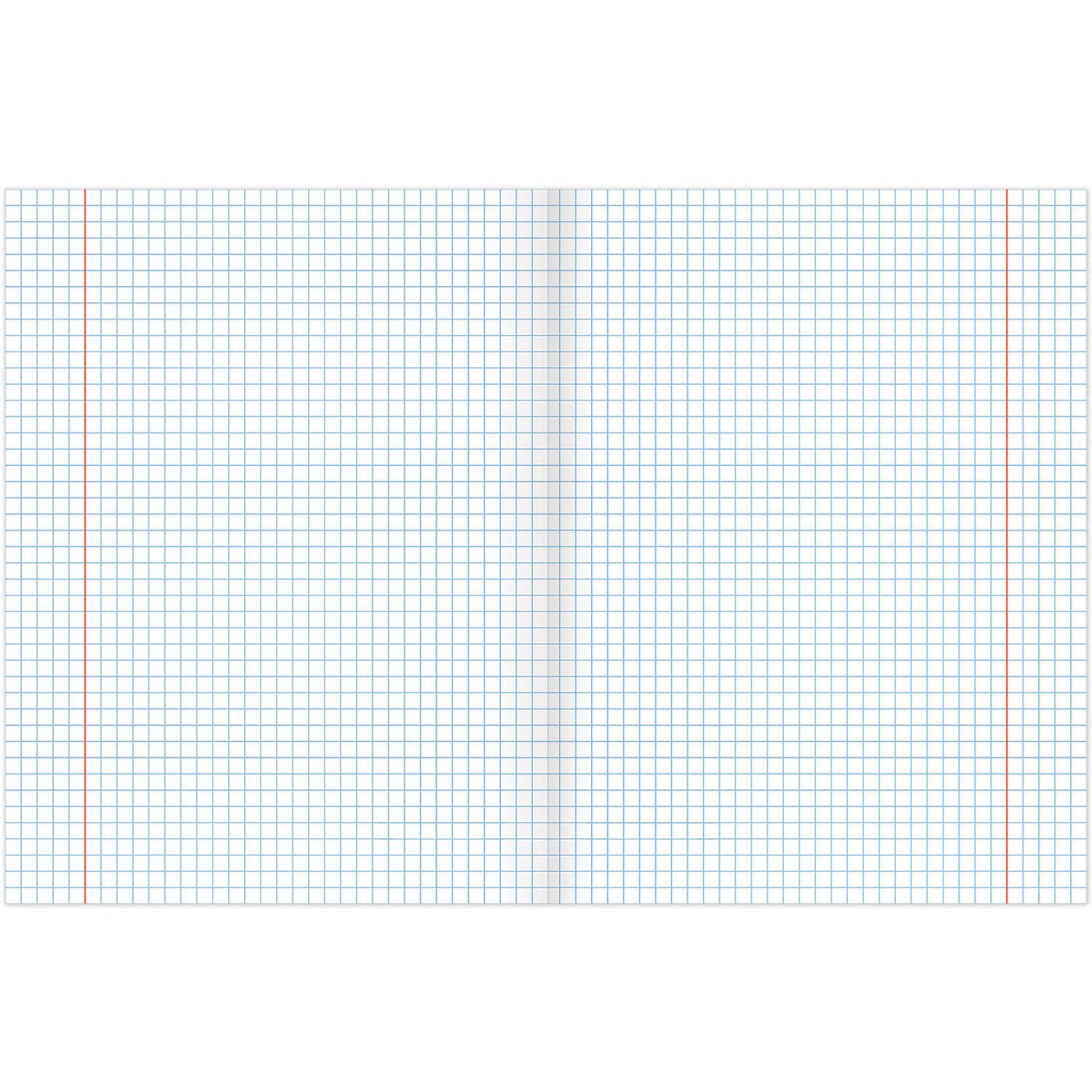 Внутренний блок плотностью 60 г/м2. Белая бумага 100% белизны с красными полями. 48 листов. Формат А5. На скрепке. Прямые углы. Длина: 205 мм. Ширина: 165 мм.