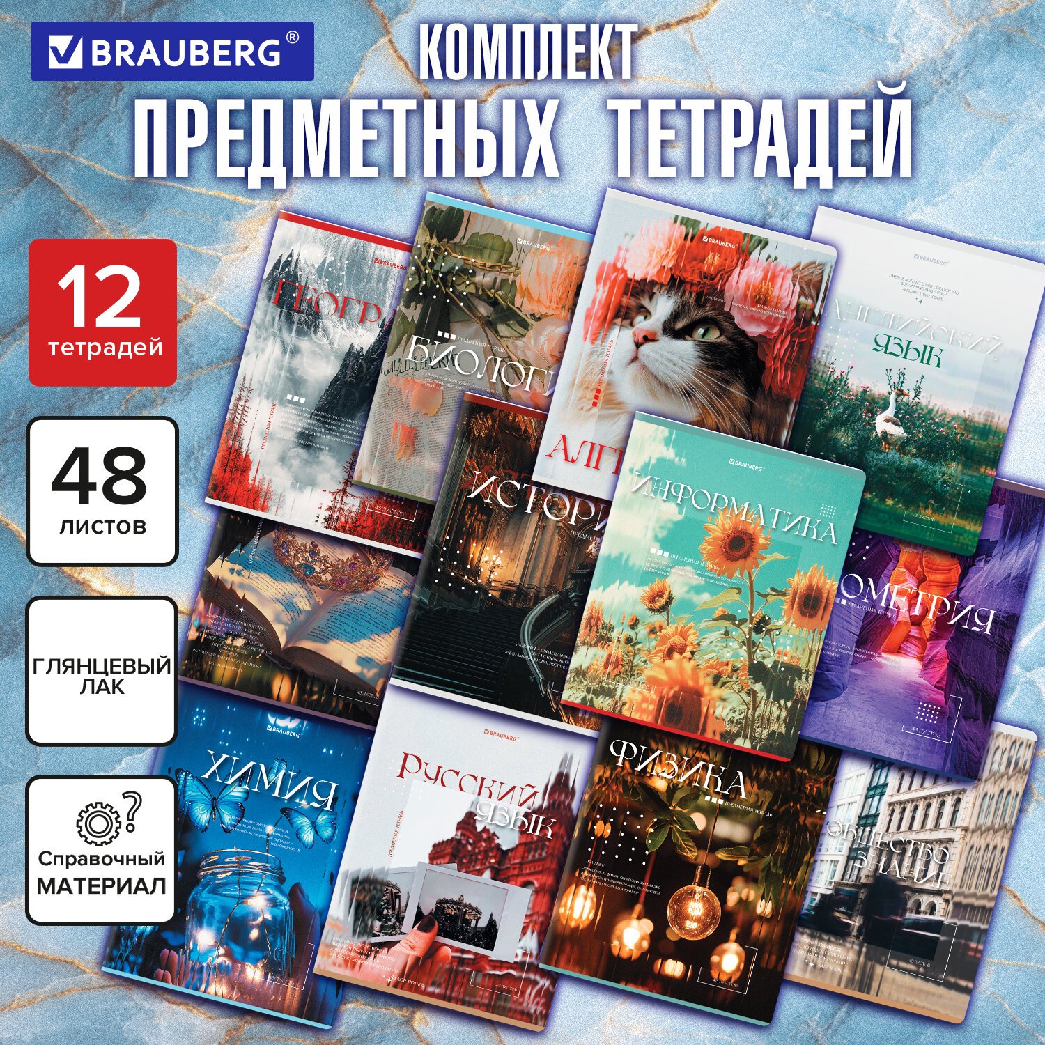 Тетради предметные, КОМПЛЕКТ 12 ПРЕДМЕТОВ, 48 л., глянцевый УФ-лак, BRAUBERG, "BLUR", 404836