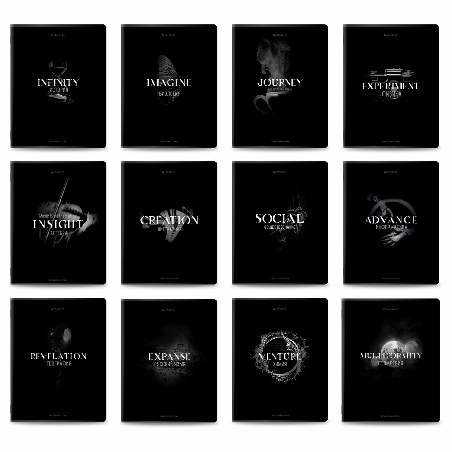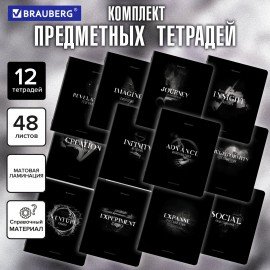 Тетради предметные, КОМПЛЕКТ 12 ПРЕДМЕТОВ, 48л, матовая ламинация, лак, BRAUBERG, MAJESTIC BLACK, 405177