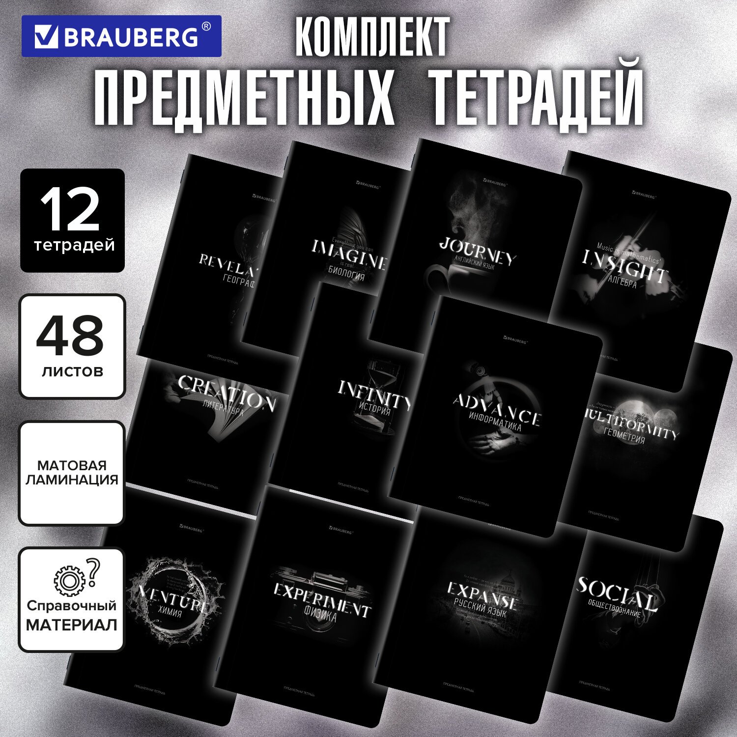 Тетради предметные, КОМПЛЕКТ 12 ПРЕДМЕТОВ, 48л, матовая ламинация, BRAUBERG, SHADOWS, 405176