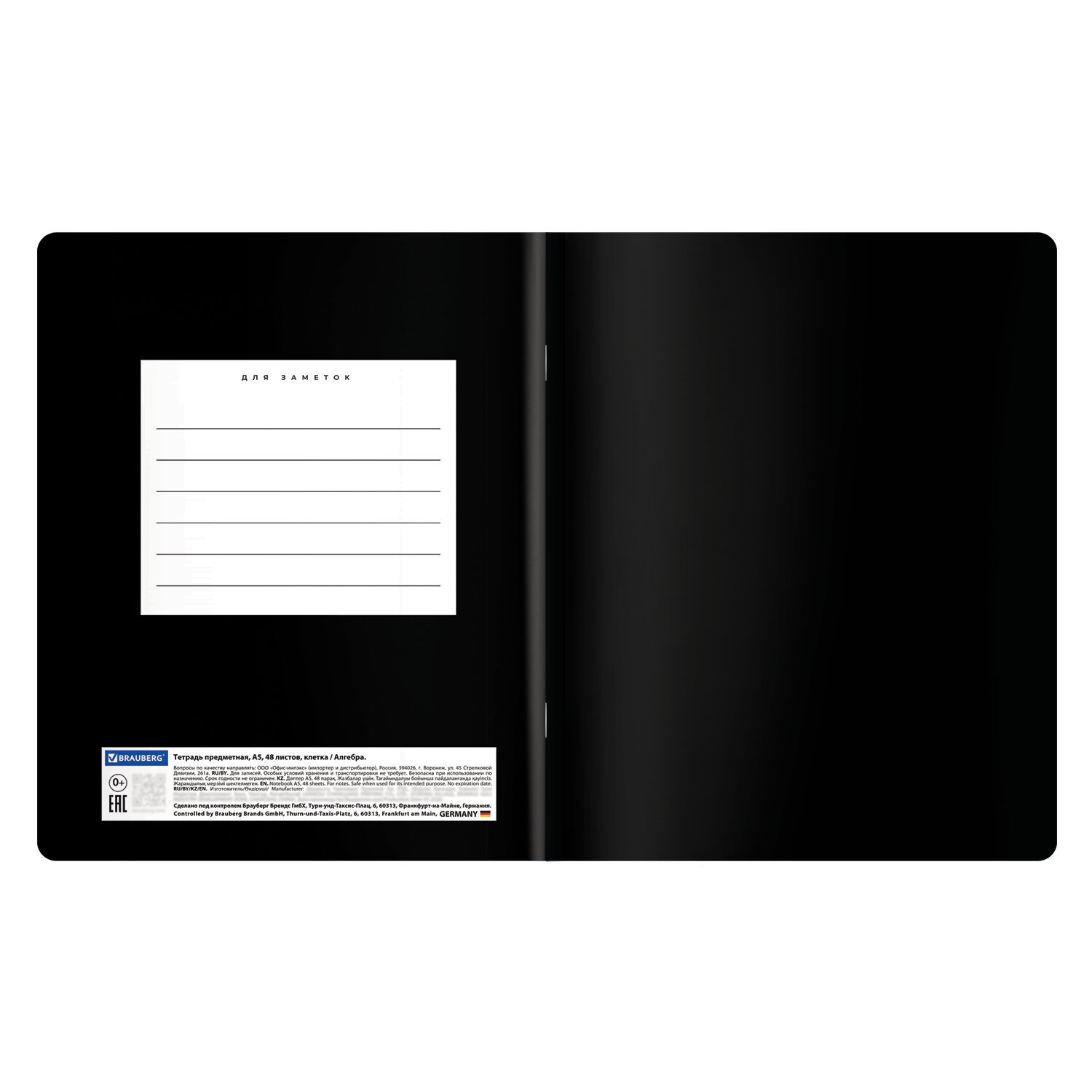 Тетради формата А5 с двойной обложкой: внешняя выполнена из высококачественного износостойкого черного пластика, внутренняя – из качественной офсетной бумаги. Преимущество таких тетрадей заключается в том, что для сохранения внешнего вида не нужно покупать дополнительную обложку. На подкладных листах содержится справочный материал по предмету. Внутренний блок плотностью 60 г/м2 из офсетной бумаги содержит 48 листов в клетку с полями. Белизна блока - 100%. Скрепка надежно соединяет листы между собой.