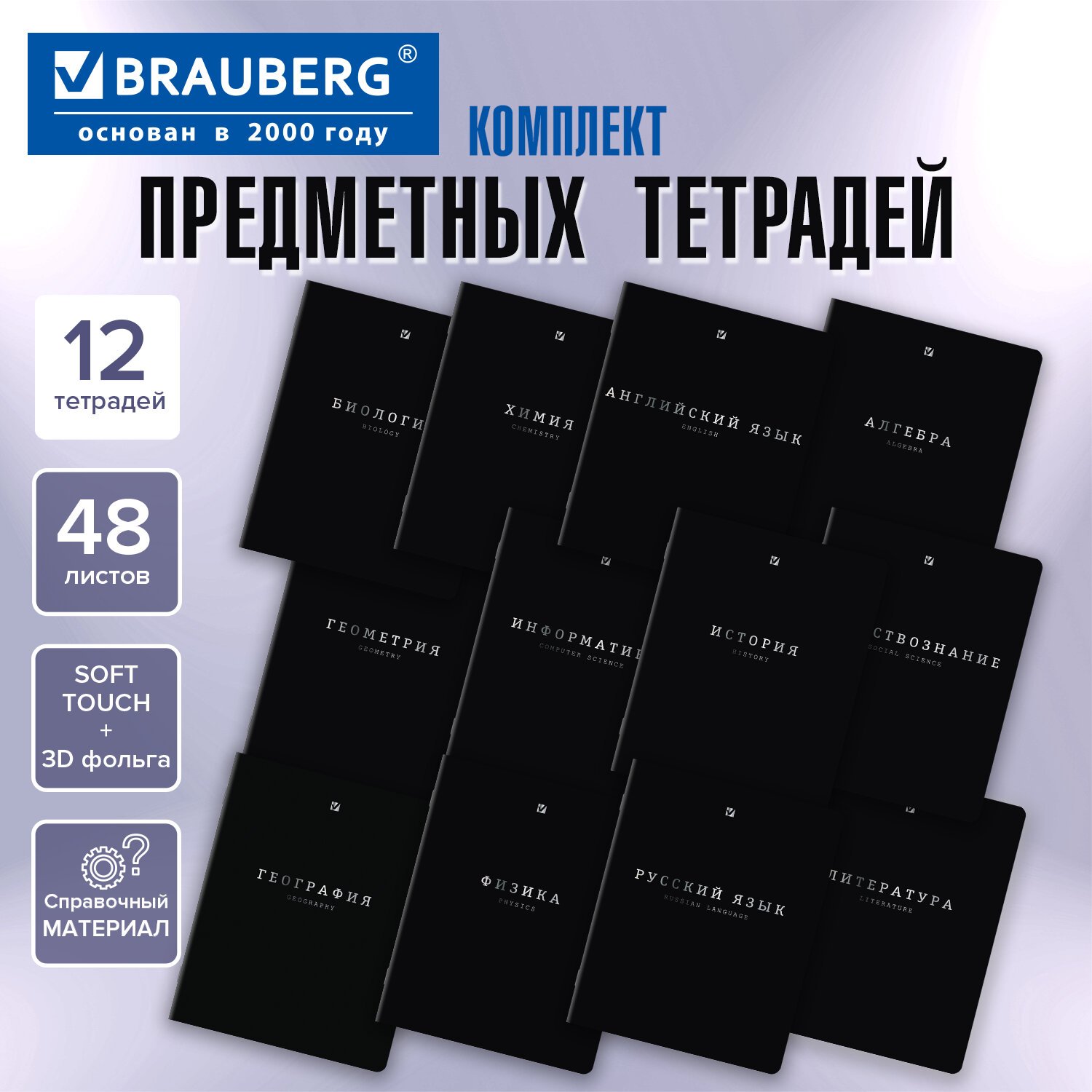 Тетради предметные, КОМПЛЕКТ 12 ПРЕДМЕТОВ, 48л, SoftTouch, 3D-фольга, BRAUBERG, BLACK GOLD, 405602