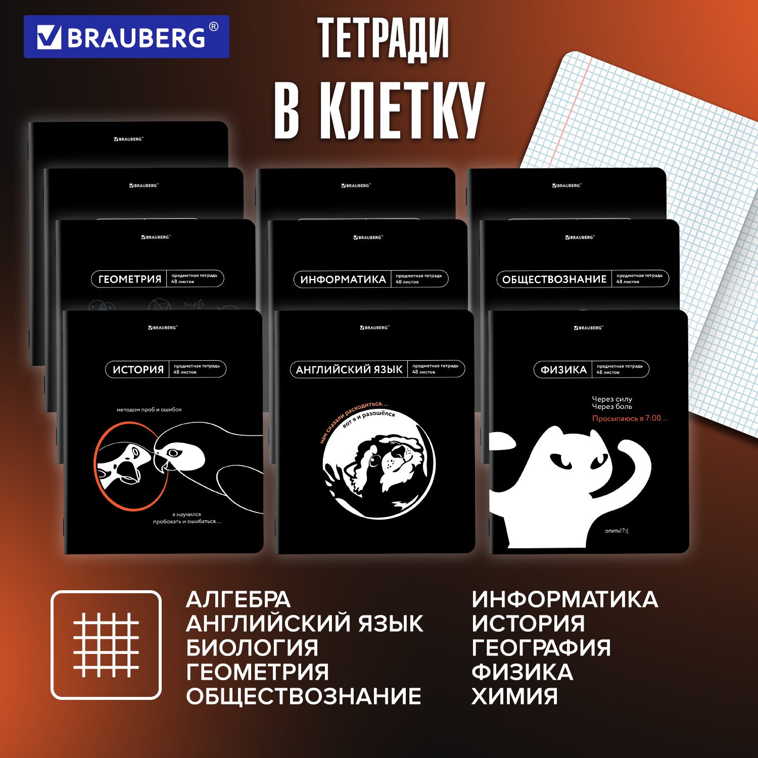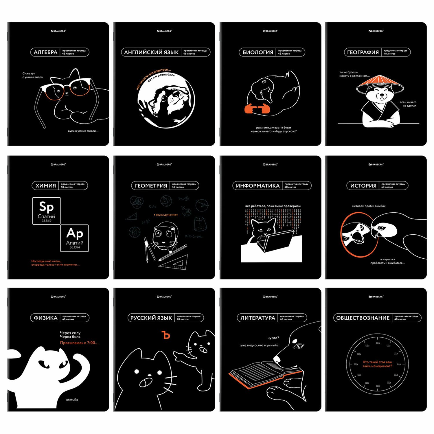 Тетради предметные, КОМПЛЕКТ 12 ПРЕДМЕТОВ, 48 л., матовая ламинация, BRAUBERG, "BLACK&WHITE", 404835