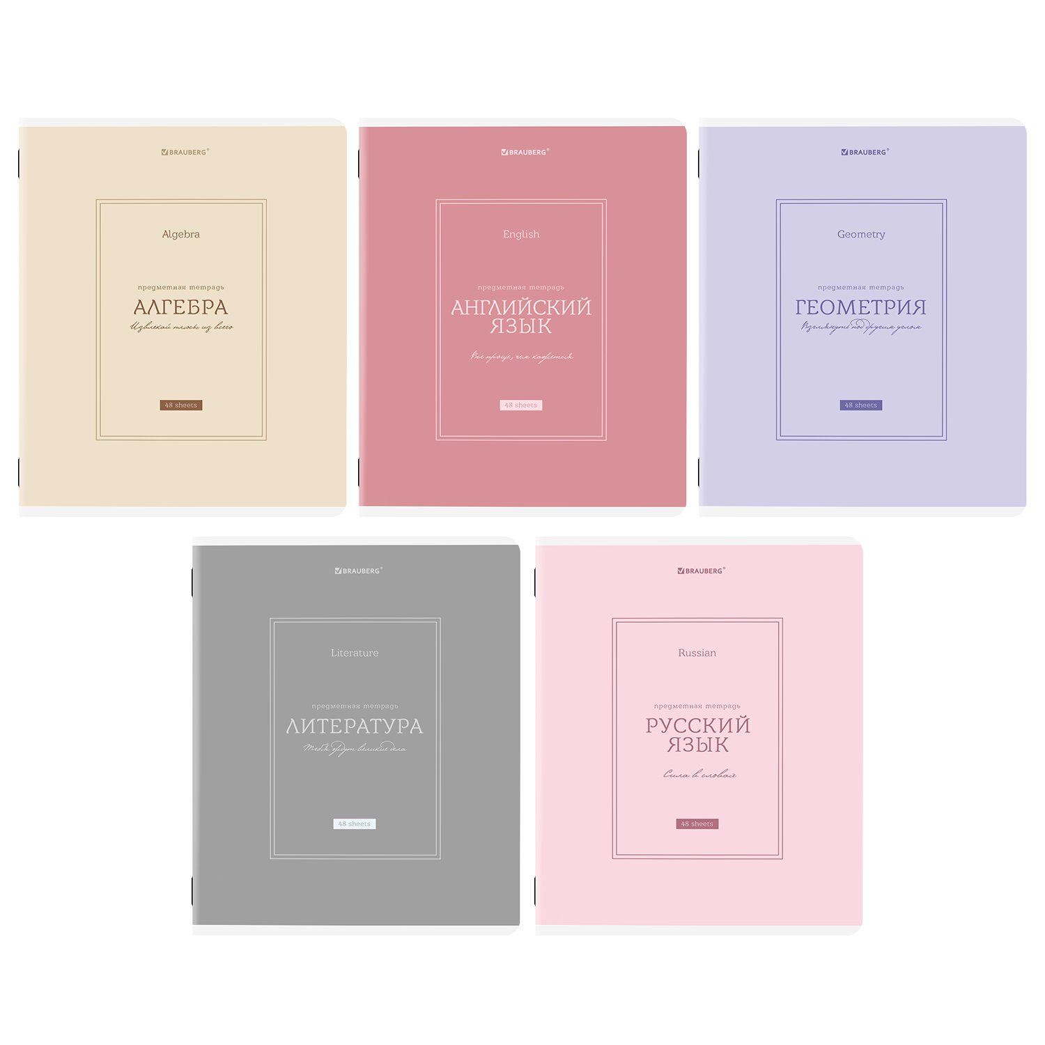 Тетради предметные, КОМПЛЕКТ 5 ПРЕДМЕТОВ, 48л, SoftTouch, BRAUBERG, VINTAGE, 405188