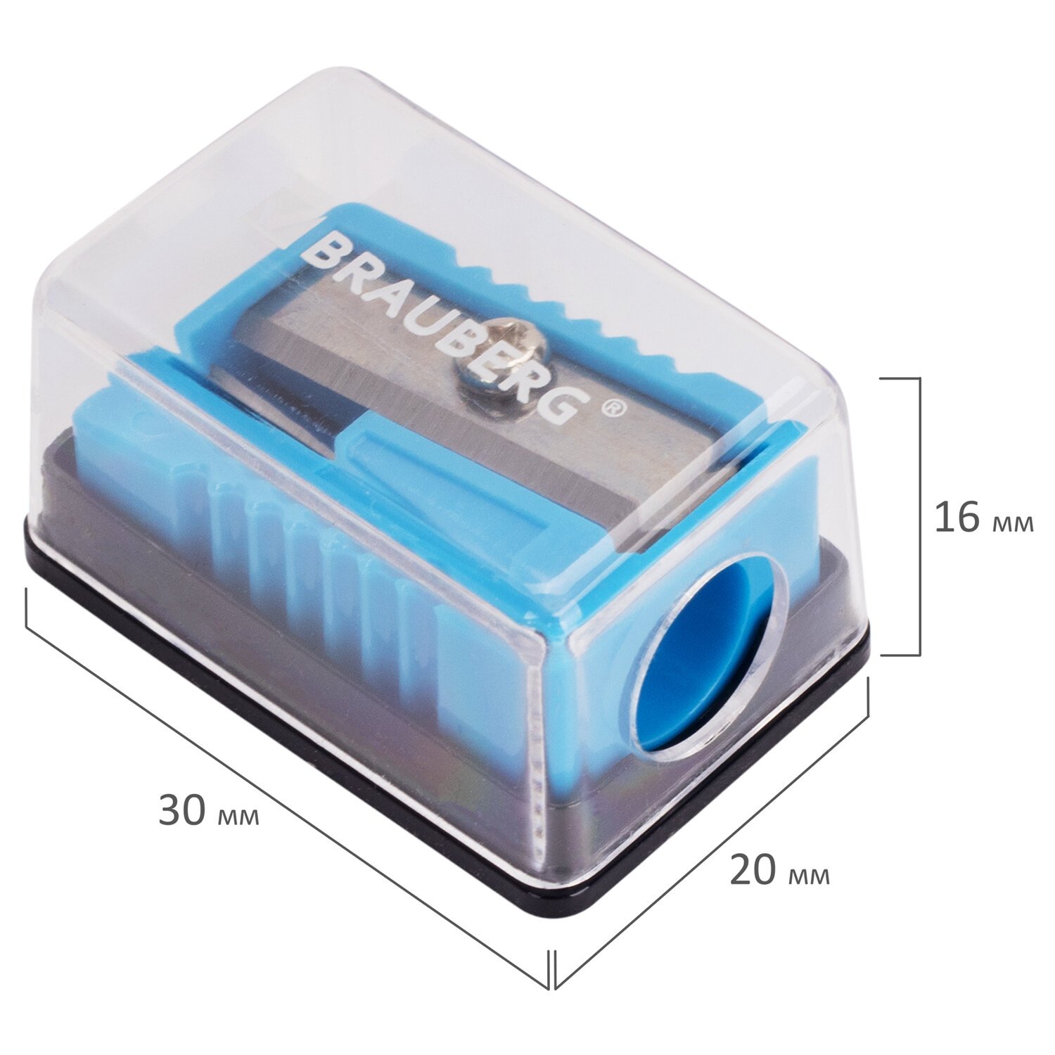 Точилка BRAUBERG "OfficeBox", с контейнером и крышкой, прямоугольная, в упаковке с подвесом, ассорти, 222494