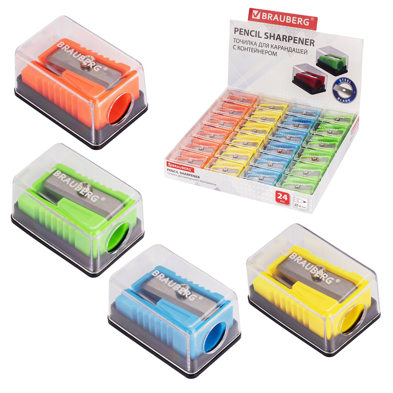 Точилка BRAUBERG "Assistant", с контейнером, пластиковая, корпус ассорти, 228451