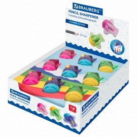 Точилка BRAUBERG "Mix Soft", пластиковая, с контейнером, корпус ассорти, 229585