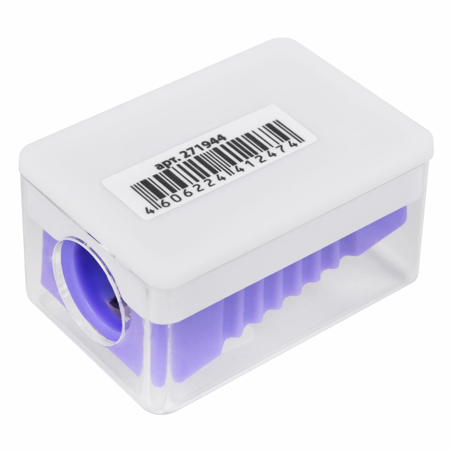 Точилка прямоугольной формы с прозрачным контейнером для сбора стружки. Корпус выполнен из пластика. Острое стальное лезвие продуманной конструкции обеспечивает быстрое и безопасное затачивание без повреждения грифеля. Точилка предназначена для цветных и чернографитных карандашей стандартного диаметра.