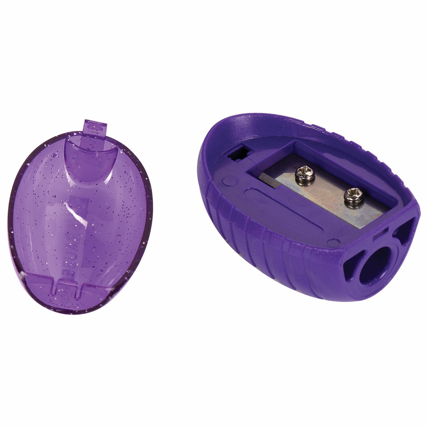 Эргономичный корпус овальной формы выполнен из пластика ярких цветов ассорти. Острое стальное лезвие обеспечивает быструю и легкую заточку. Карандаш затачивается аккуратно, а опилки остаются в специальном контейнере. Размер - 28х31х46 мм.