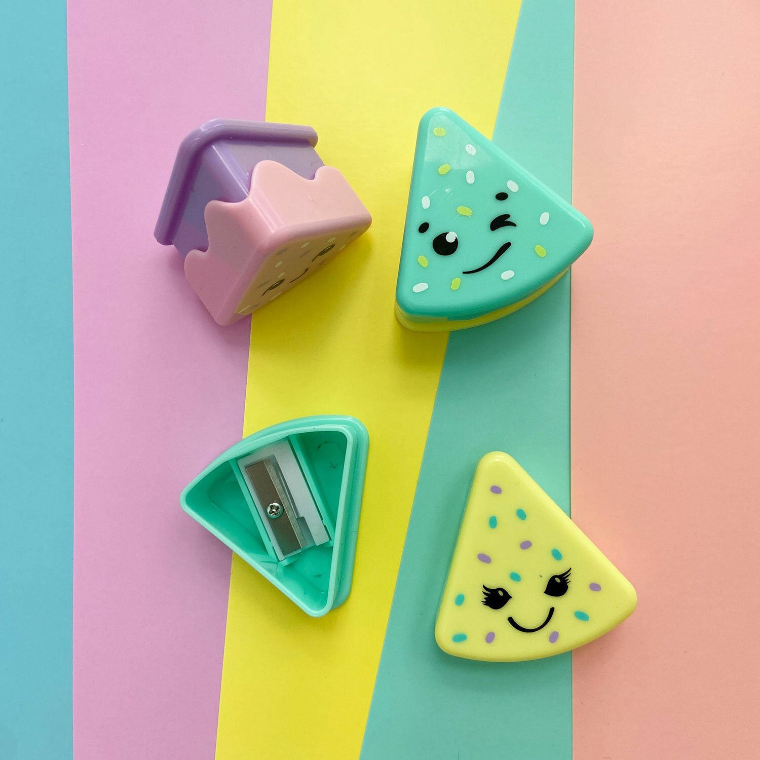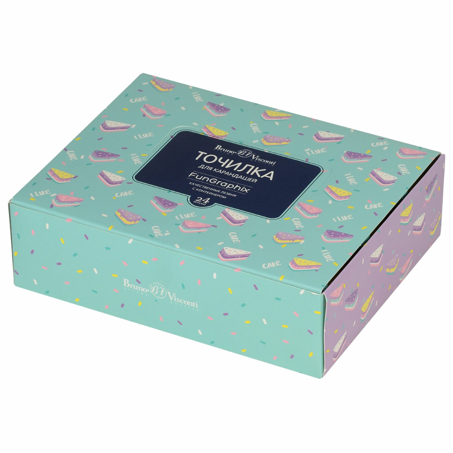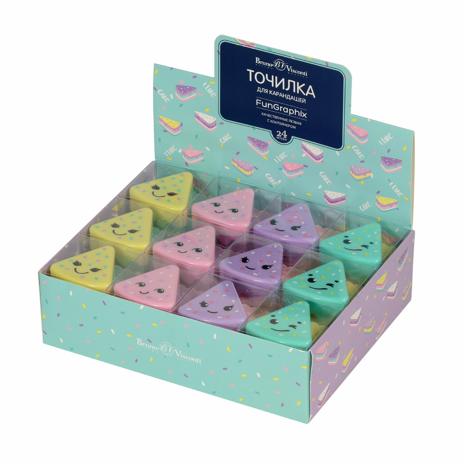 Универсальная точилка BRUNO VISCONTI "FunGraphix Кексик" с контейнером для стружки в форме кусочка торта понравится сладкоежкам и любителям геометрических фигур.