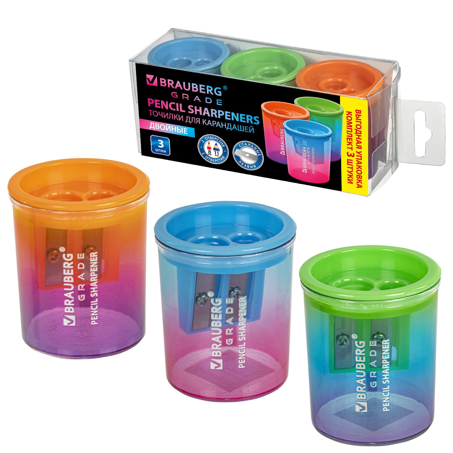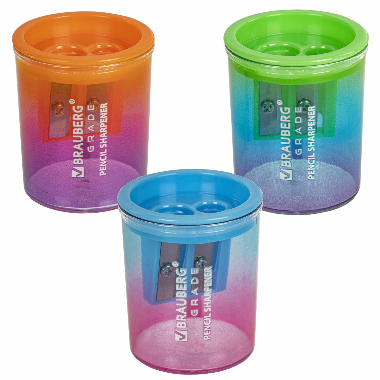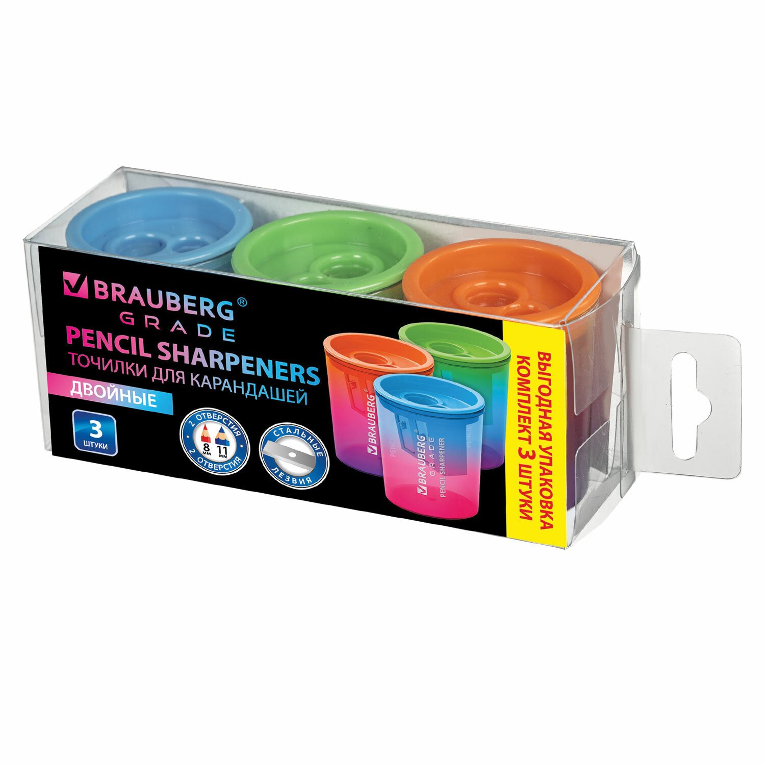 Точилка BRAUBERG "Grade" – предмет №1 в паре с карандашом на рабочем столе в офисе, на школьной парте или дома. Набора из 3 шт. хватит на каждого ребенка в семье или на небольшую рабочую группу в офисе.