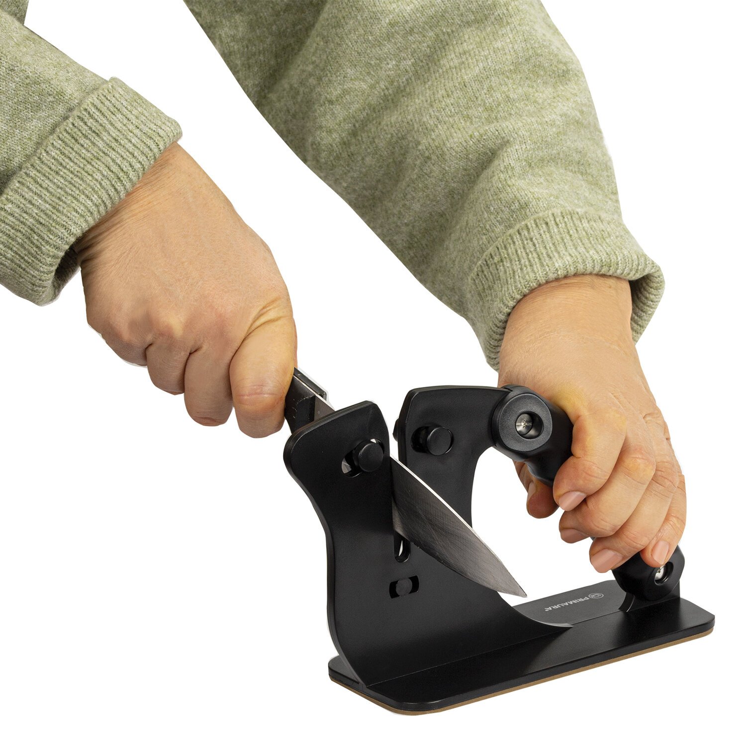 Точилка для ножей PRIMAURA с автоматическим подбором угла заточки — это универсальный инструмент, который подходит для заточки самых разных лезвий. Заточит даже топор! Острый нож — всего за пару секунд без лишних хлопот с точилкой PRIMAURA.