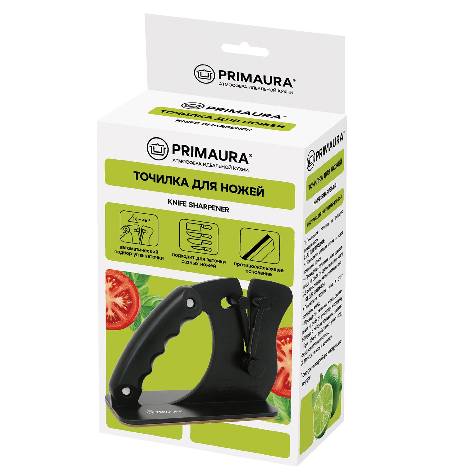 С ножеточкой PRIMAURA Вы вернете остроту ножам за считанные минуты: Правка и заточка лезвия не просто бережно восстанавливает его остроту и форму, но и продлевает срок службы.