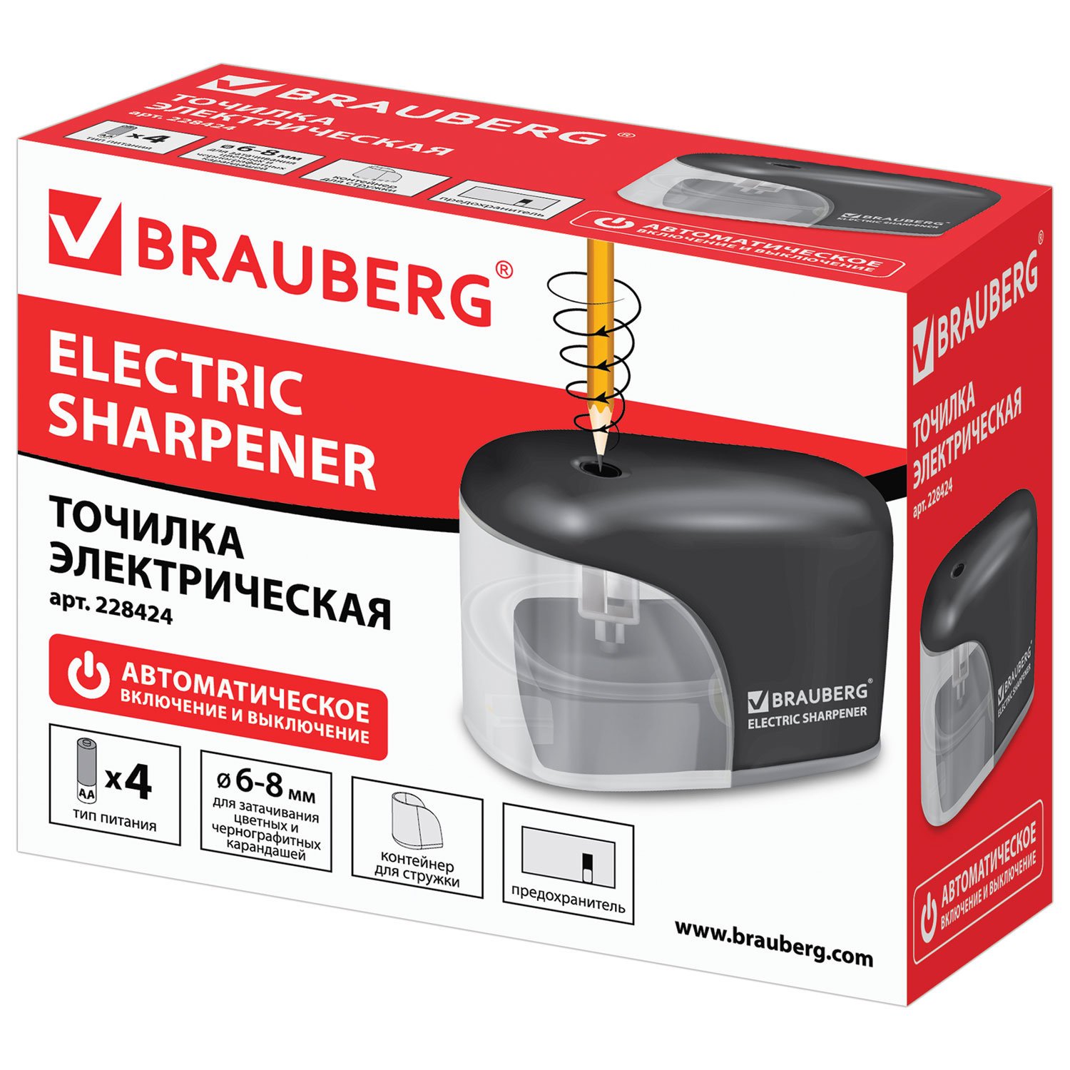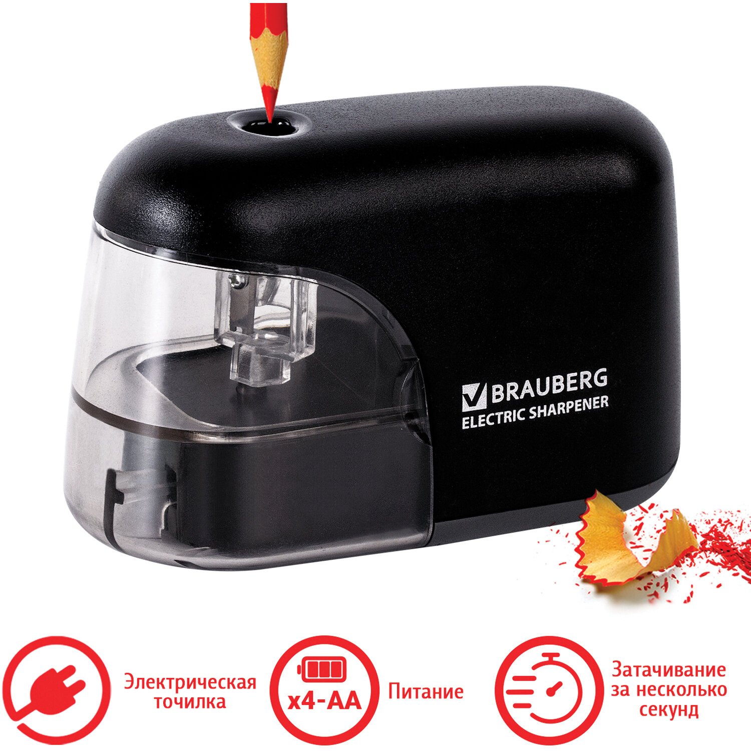 Точилка электрическая BRAUBERG "STANDARD", 2 отверстия для карандашей (включая утолщенные), питание от 4 батареек АА, 228423