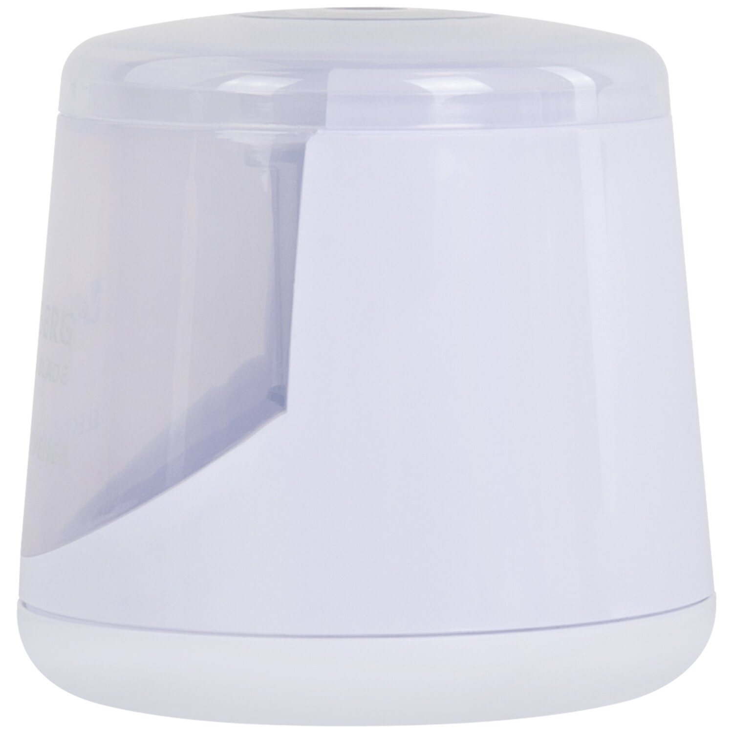 Электрическая точилка BRAUBERG DOUBLE BLADE WHITE с контейнером для сбора стружки и прямым двойным лезвием работает от 2 батареек АА (в комплект не входят). Предназначена для затачивания деревянных и пластиковых карандашей диаметром 6-8 мм.